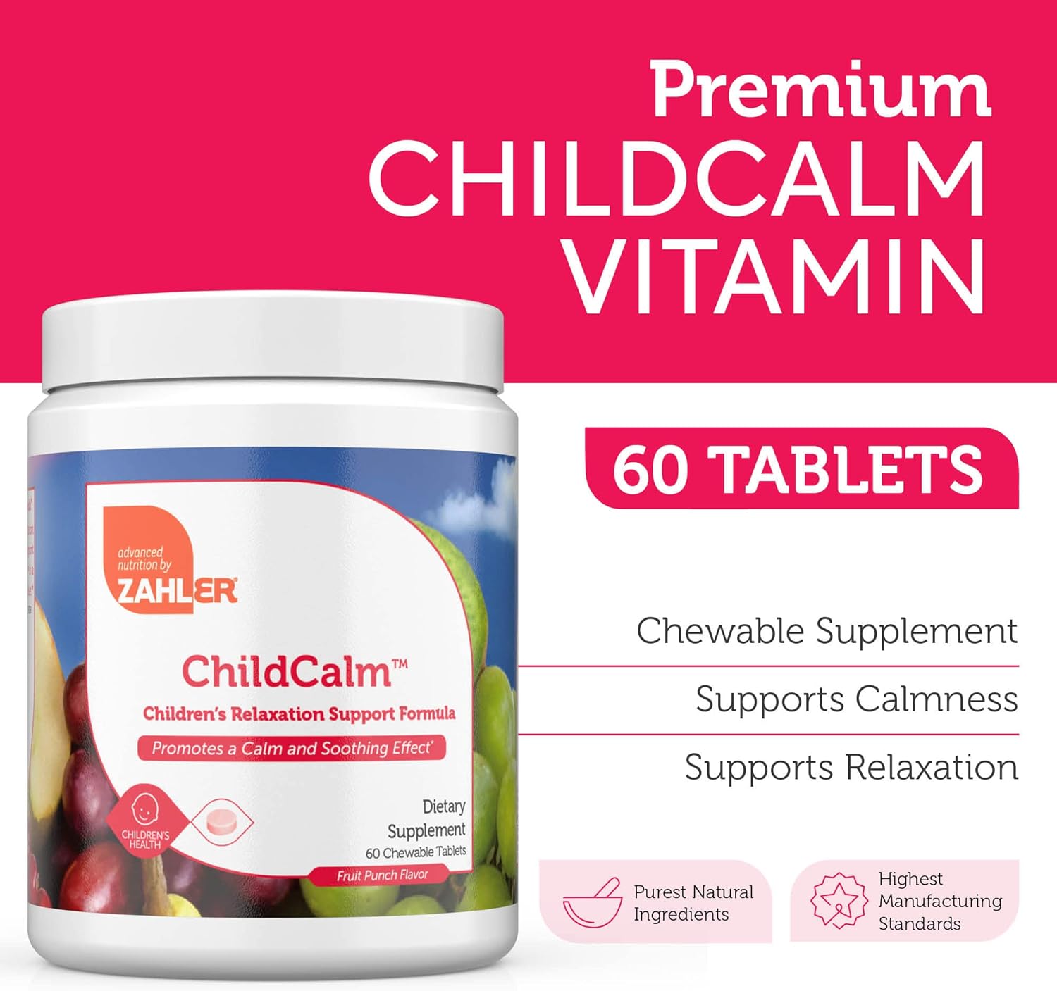 Zahler Childcalm, Kosher Fruit Punch Chewable Magnesium For Kids - Natural Calm, Mood Support, And Relaxation - Calming Kids Magnesium Supplement Childrens Magnesium, 60 Tablets