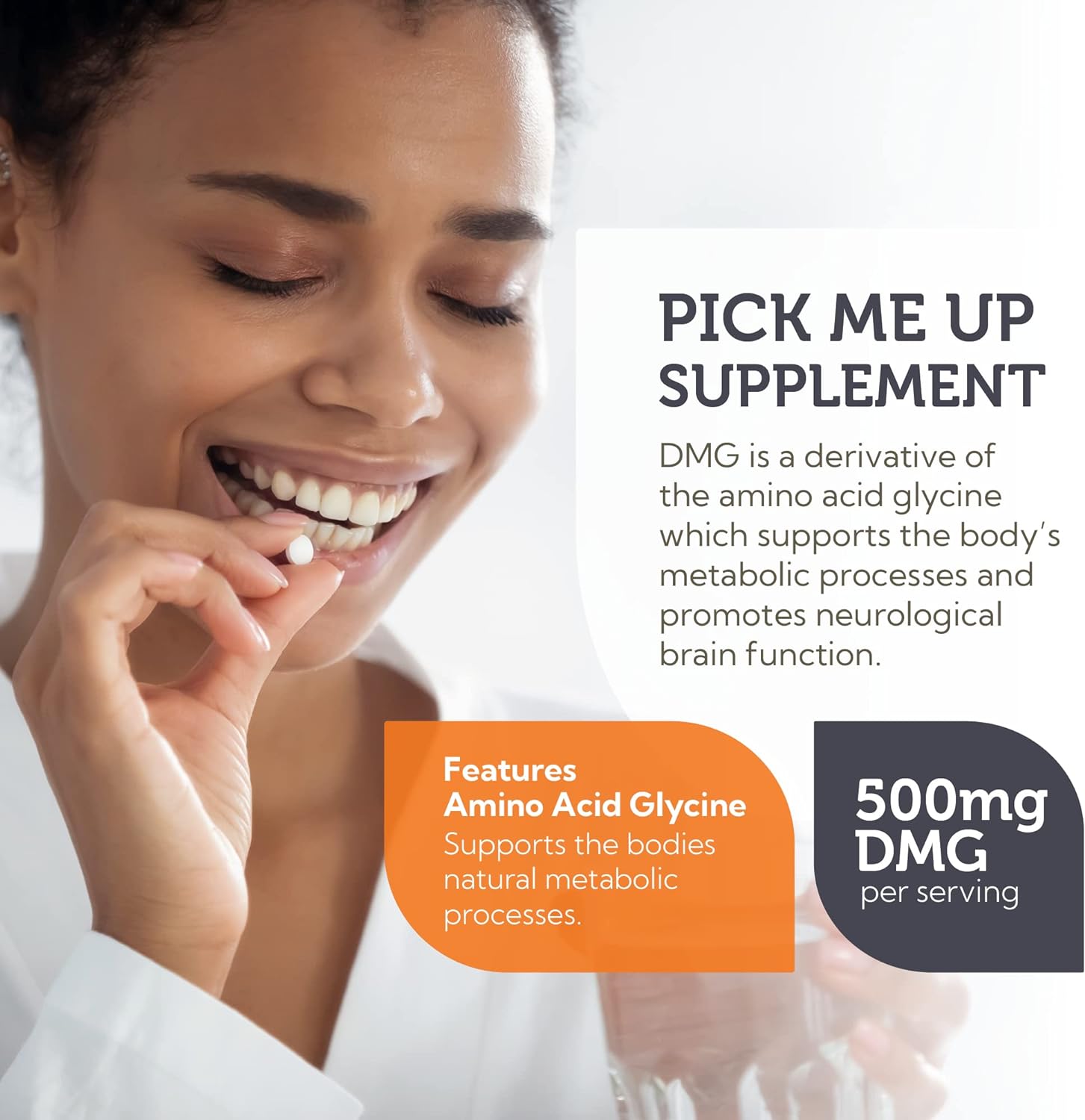 BULLET POINTS : 1 > POTENT DMG - Each chewable tablet contains 500mg of DMG Dimethylglycine. DMG is a derivative of the amino acid glycine, found in certain foods