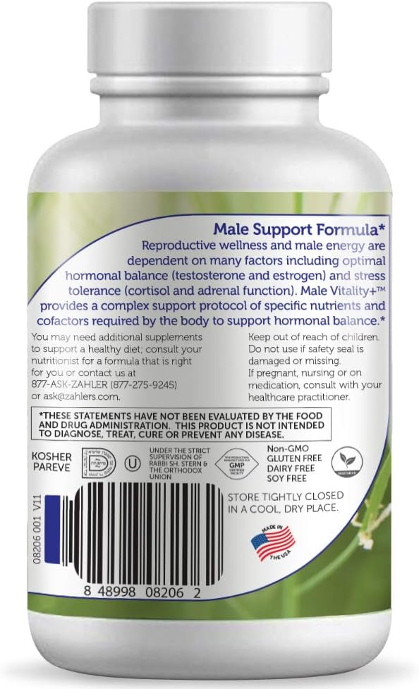 Zahler Male Vitality+, Male Fertility Supplements, Male Formula Supporting Energy And Reproductive Wellness, Certified K