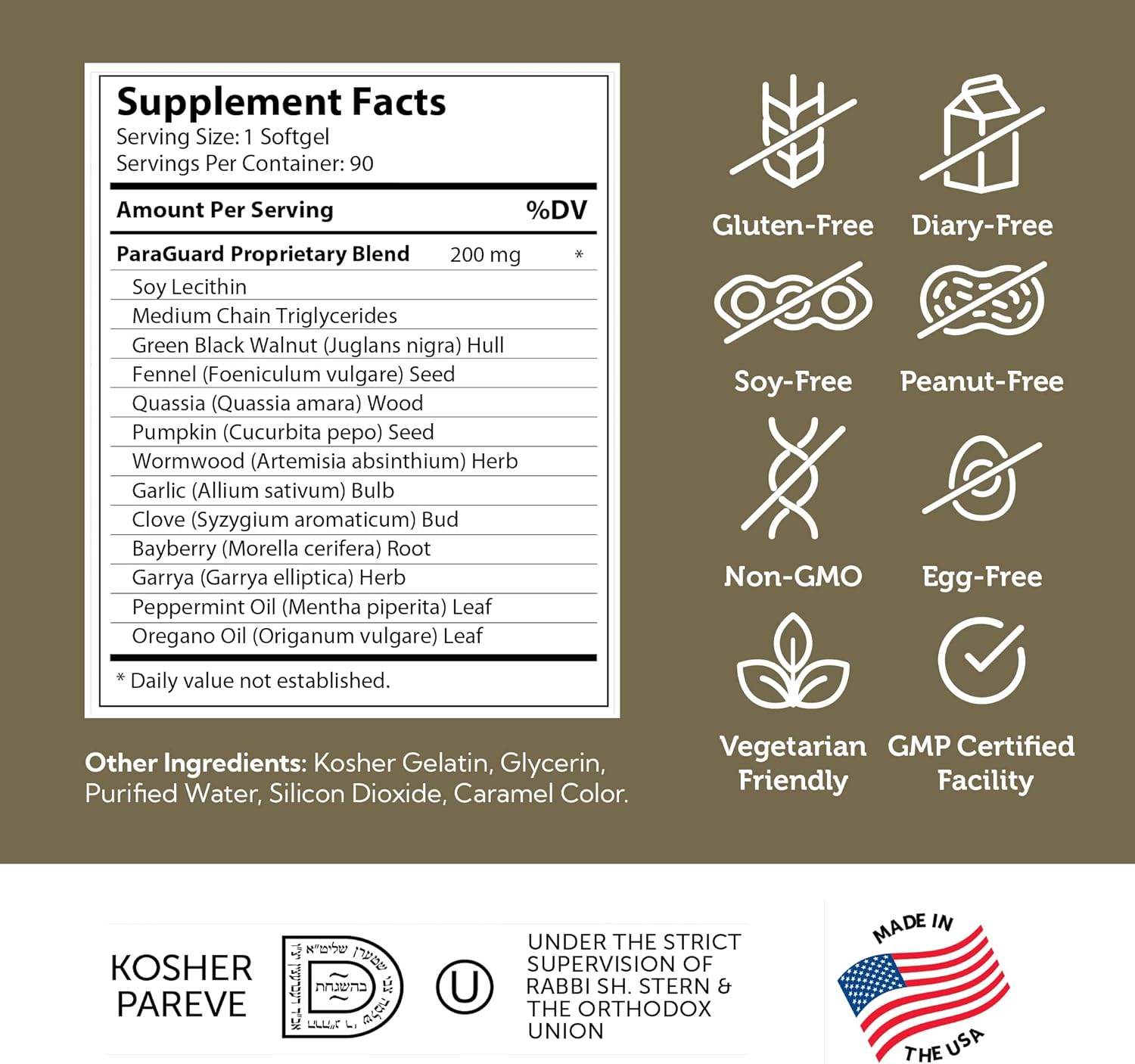 Research Shows That Gut Health Can Impact Every System Of Your Body. The Herbs Found In Paraguard Have Been Traditionally Used To Support Digestion And Gut Health. Benefits & Features Available In Softgel Or Liquid Drops For Adults And Children 12 And Older Special Formula Of Herbal Ingredients Supports Gut Health Beneficial Microflora Supports Overall Health And Vitality Certified Kosher Supports Digestion Our Pure Unadulterated Natural Ingredients Like Walnut Hull, Wormwood, Clove Bud, Pumpkin Seed, Peppermint And More Have All Been Used In Traditionally To Help Support Overall Gut Health And Digestion.. Advanced Nutrition Zahler Is A 3Rd-Generation Family Company That Is Dedicated To Scientific Research Of Raw Ingredients And Advanced Formulations. We Believe Nature Knows Best And Needs To Be Respected, Which Is Why We Search The Globe For Pure Ingredients. All Our Products And Ingredients Are Certified Kosher At Every Stage Of Development