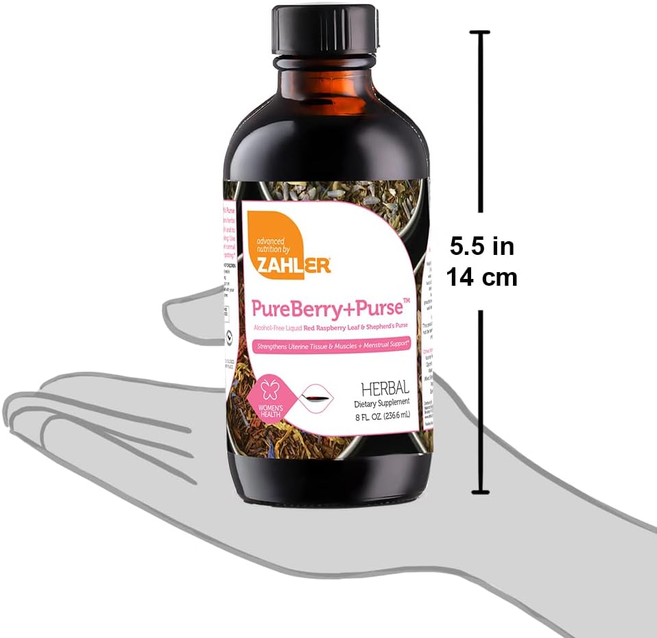 Zahler Pureberry+Purse, Liquid Raspberry Leaf & Sheperd'S Purse, Strengthens Uterine Tissue, Certified Kosher, 8Oz