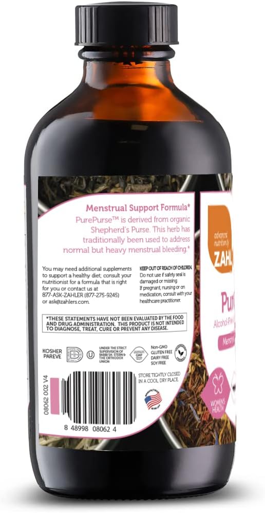 DESCRIPTION : Zahler PurePurse, Liquid Sheperd’S Purse which Helps Reduce staining, All Natural Liquid Menstrual Support Formula, Certified Kosher,4oz