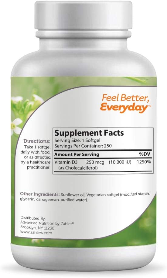 Zahler Vitamin D3, Vitamin D 10,000Iu, Kosher (D3 10,000 250 Count)