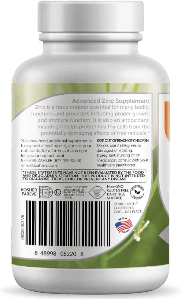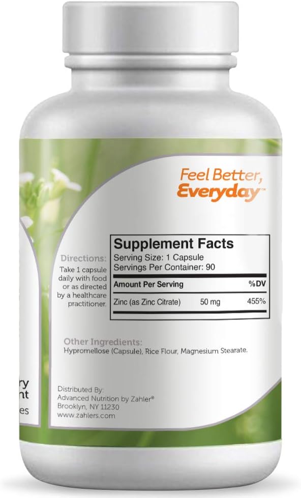 4 >HIGHEST QUALITY: Zahler Advanced Zinc supplement provides 50mg of Zinc Citrate in just a one a day capsule