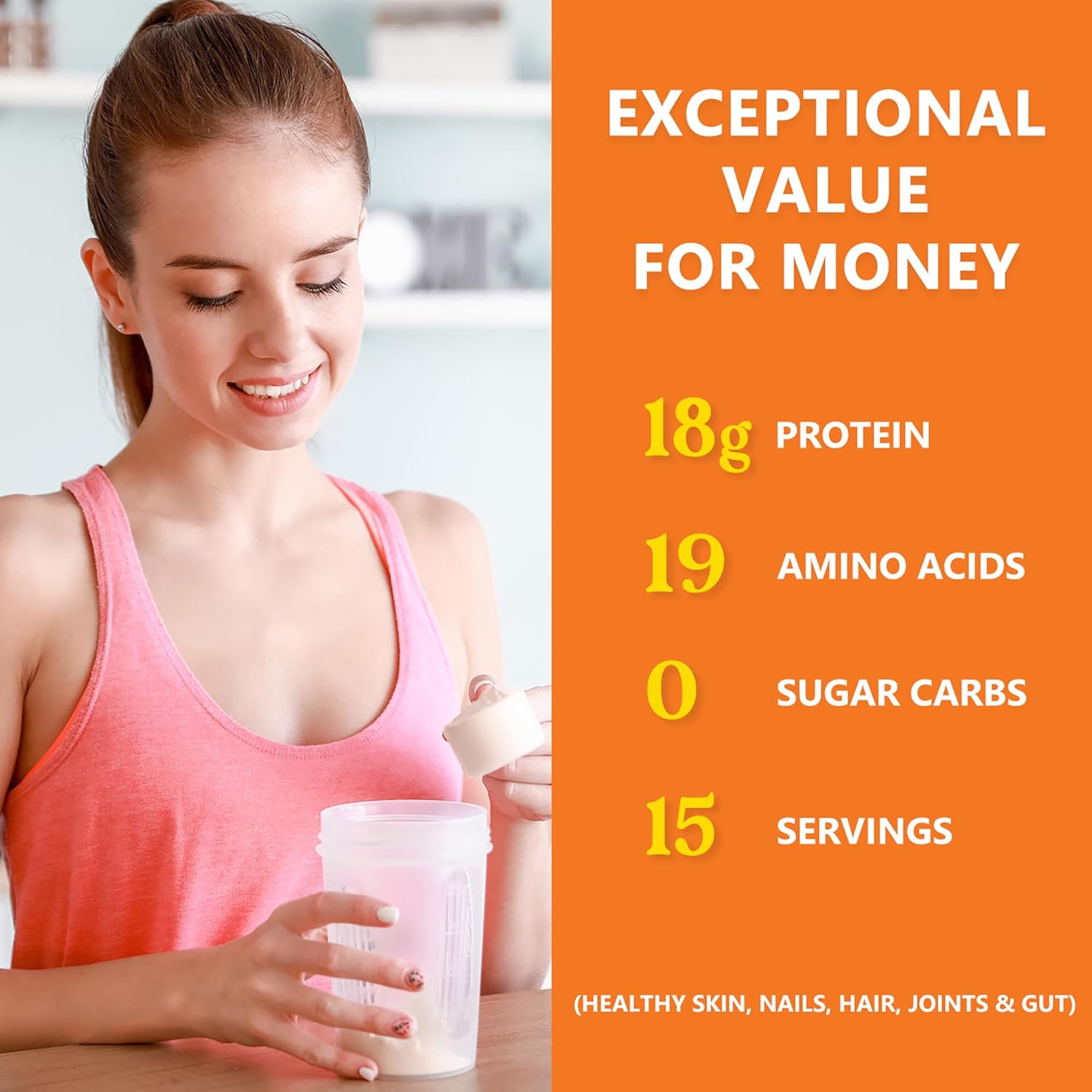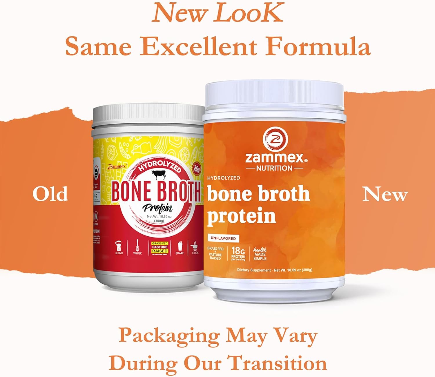 Zammex 100% Grass-Fed Beef Bone Broth Protein Powder, 20G Protein, Hydrolyzed Collagen Peptides Type 1&3, Supports Healthy Skin, Nails, Hair, Joints, Non-Gmo, Gluten Free, Paleo & Keto Friendly