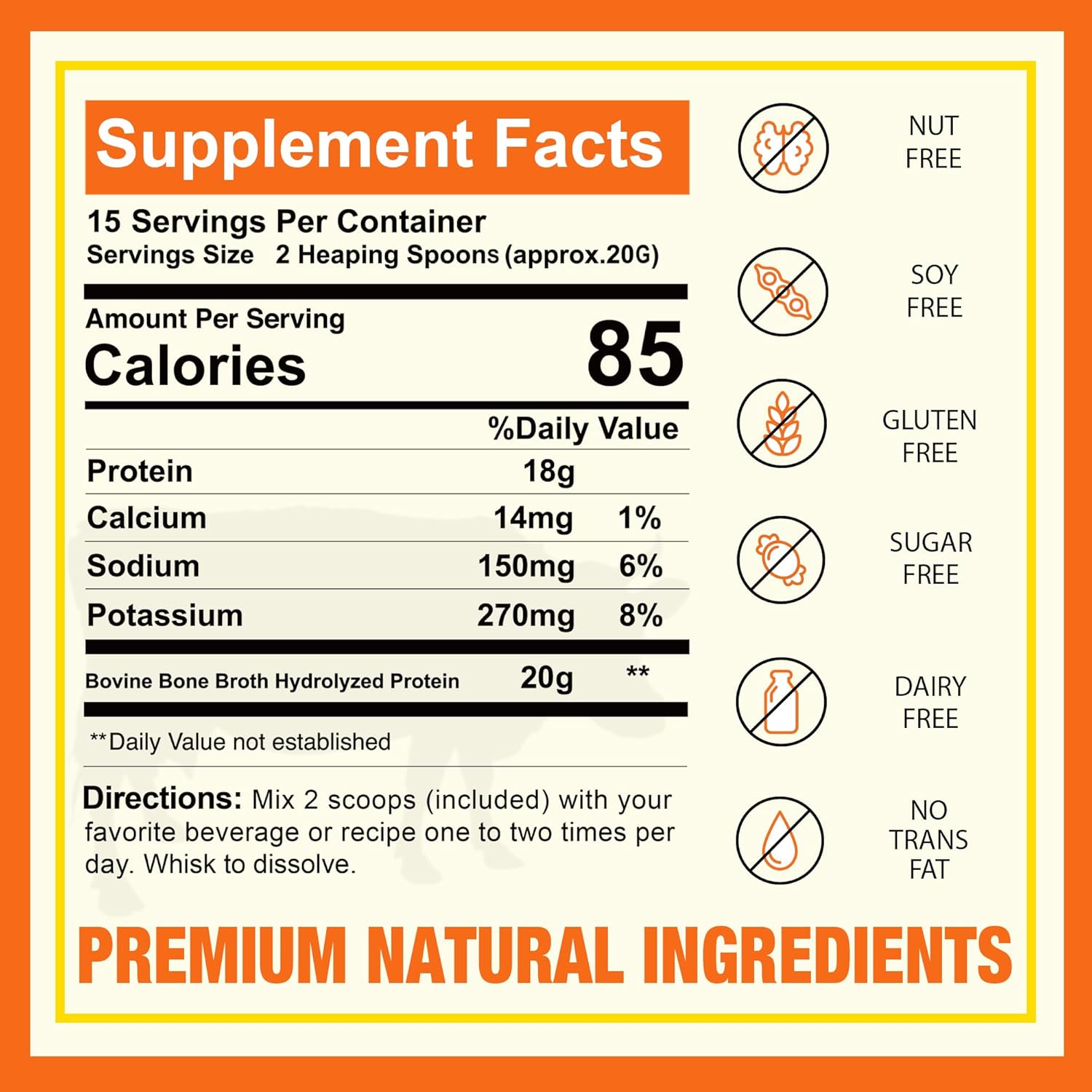 High Protein, Natural Flavor: 20G Protein Per Serving From Pasture Raised, Grass-Fed Beef Bone Broth, Natural Beef Flavor As You Expected, Made And Tested In The Usa By A Certified Cgmp Facility