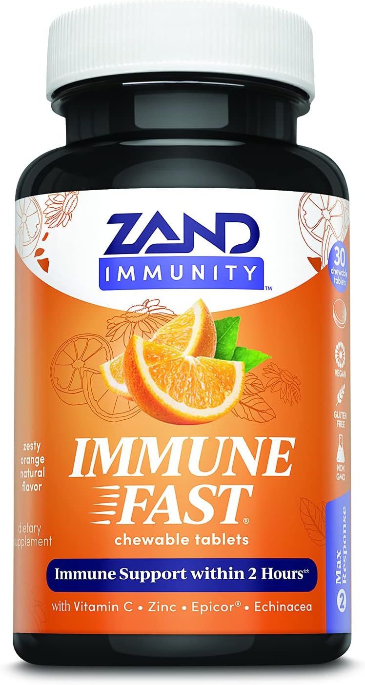 Zand Immune Fast Zesty Orange Chews | Boosts Immune Response & Cell Activity W/Epicor*, Echinacea, 30 Tablets, 10 Serv