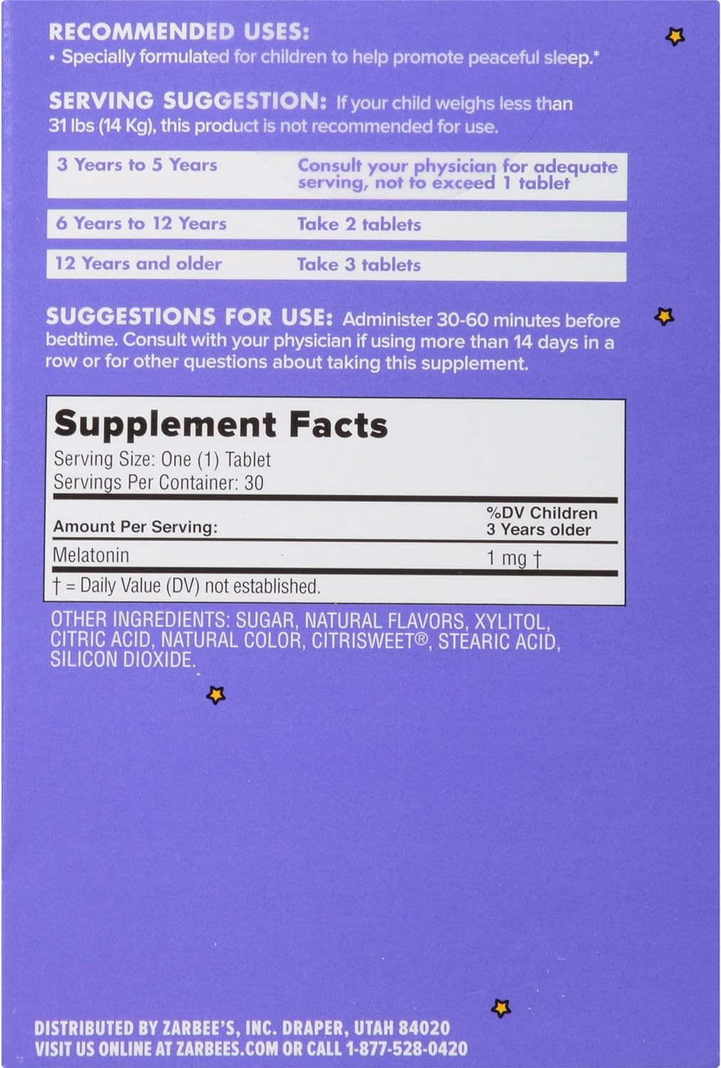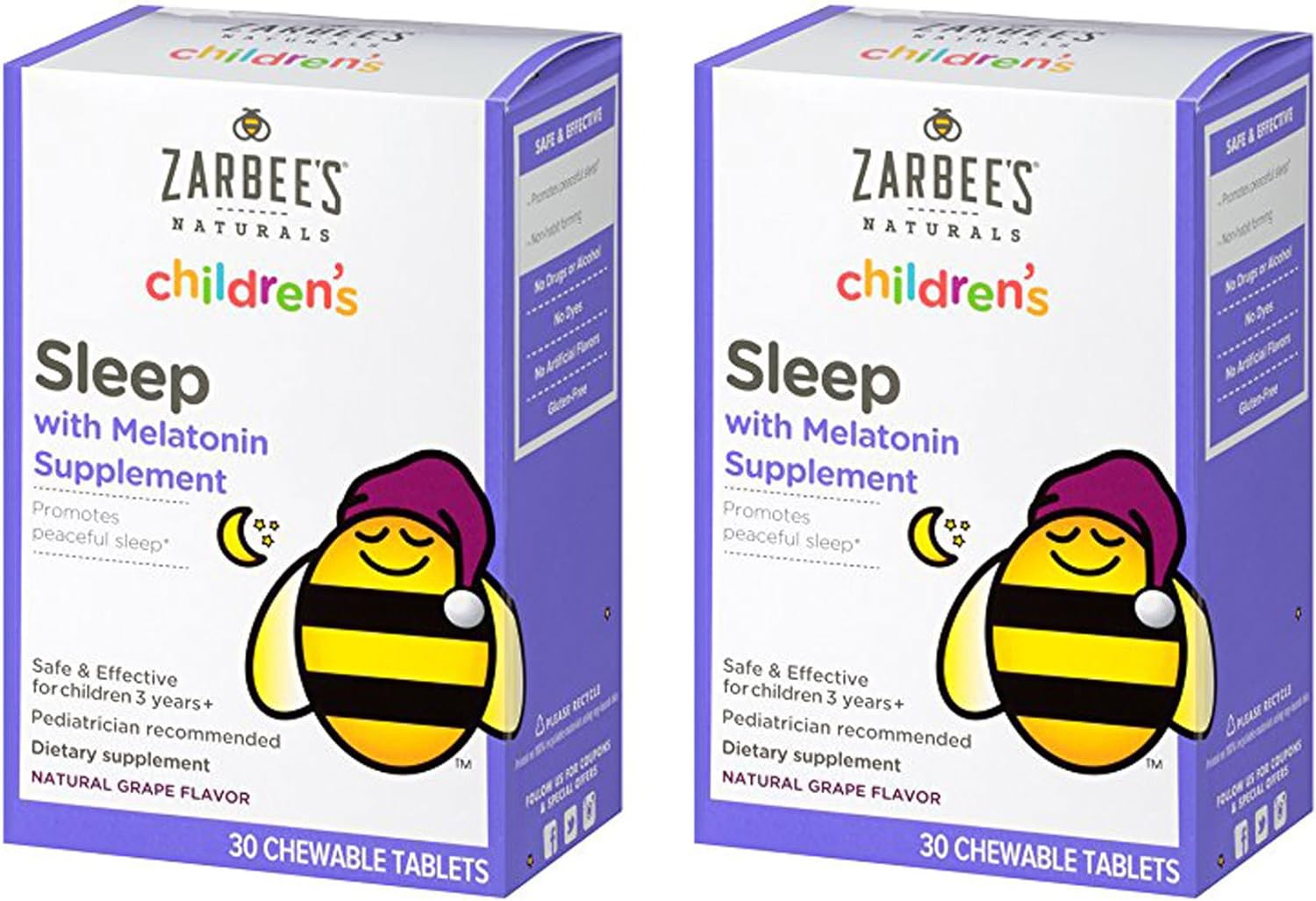 Zarbee'S Naturals Children'S Sleep Melatonin Supplement Chewable Tablets Grape Flavor - 30 Ct, Pack Of 2