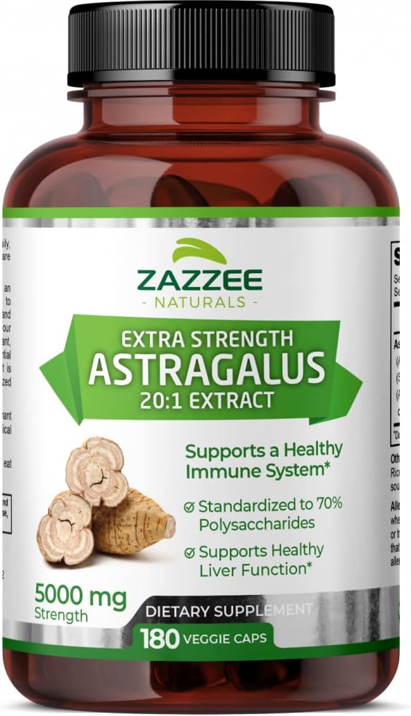 Zazzee Extra Strength Astragalus Root 20:1 Extract, 5000 Mg Strength, 70% Polysaccharides, 180 Vegan Capsules, 6 Month Supply, 100% Vegetarian, Standardized And Concentrated 20X Extract, Non-Gmo
