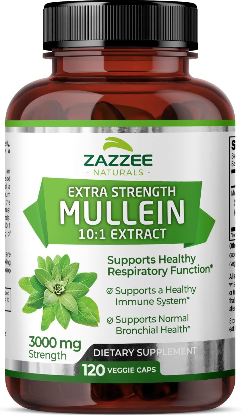 DESCRIPTION : Zazzee Extra Strength Mullein 10:1 Extract, 3000 mg Strength, 120 Vegan Capsules, 4 Month Supply, Concentrated and Standardized 10X Extract, 100% Pure Leaf Powder, All-Natural and Non-GMO