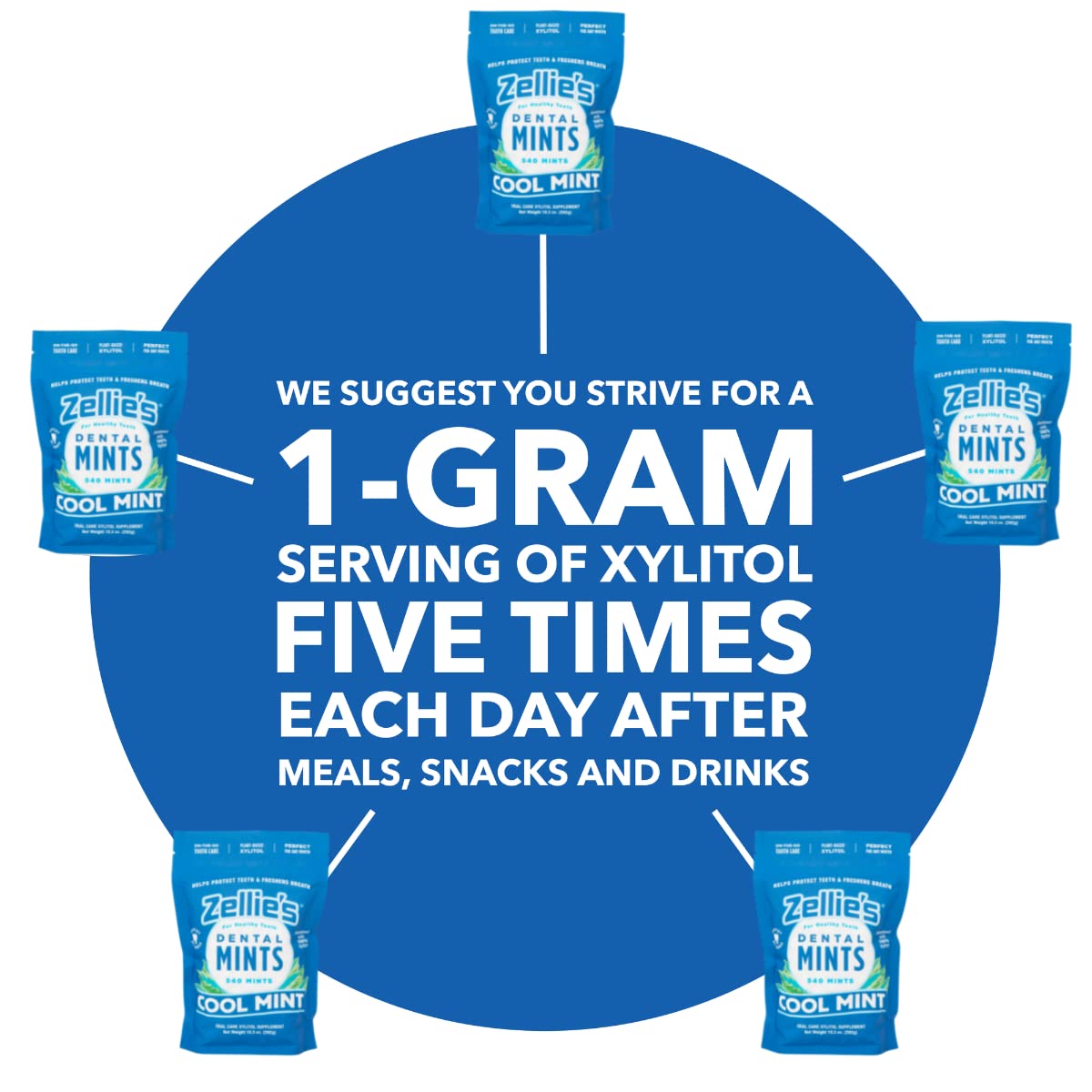 Zellie's Cool Mint Dental Mints are a burst of minty goodness and they are amazing for your teeth! Your mouth will feel clean and refreshed after each power-packed mint. Looking for a breath-freshening mint? This is the flavor for you! Zellieās mints are sweetened with 100% tooth-friendly xylitol and each mint contains 0.55 grams of xylitol. Enjoy a few Zellieās mints after each meal, snack or beverage to help neutralize acidity for a cleaner, healthier mouth. SUGGESTED USE: Dissolve Zellie's mints in your mouth directly after meals, snacks and drinks. INGREDIENTS: Xylitol, Natural Peppermint Flavor, Magnesium Stearate, Natural Menthol. *all ingredients are GMO Free Star-K Kosher Certified