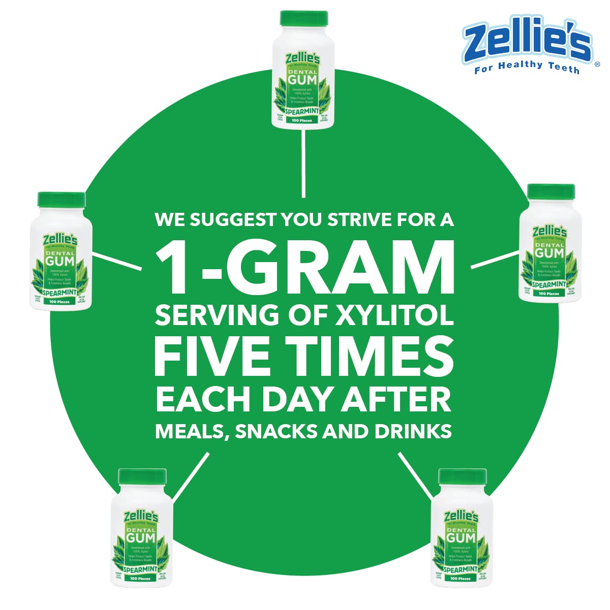 Zellie'S | 100% Xylitol Sugar Free Spearmint Chewing Gum | Spearmint Flavor (100 Count (Pack Of 1))