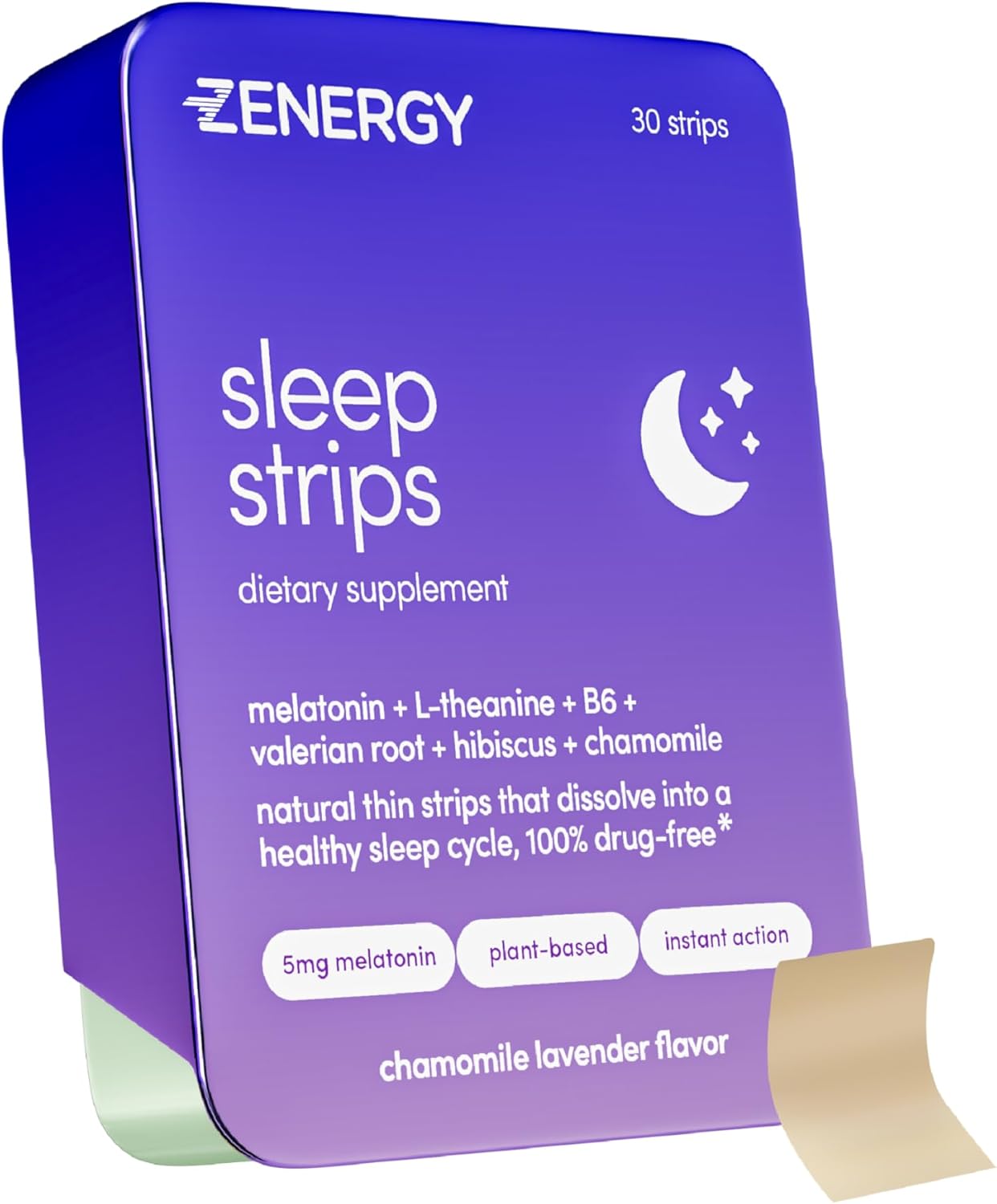 RESTFUL SLEEP WITHOUT THE HASSLE: Drift into deep slumber with our ZENERGY strips, enriched with melatonin, l-theanine, B6, valerian root + hibiscus + chamomile. Ideal for travel, combating jet lag, stressful days, or simply ensuring a peaceful night’s sleep