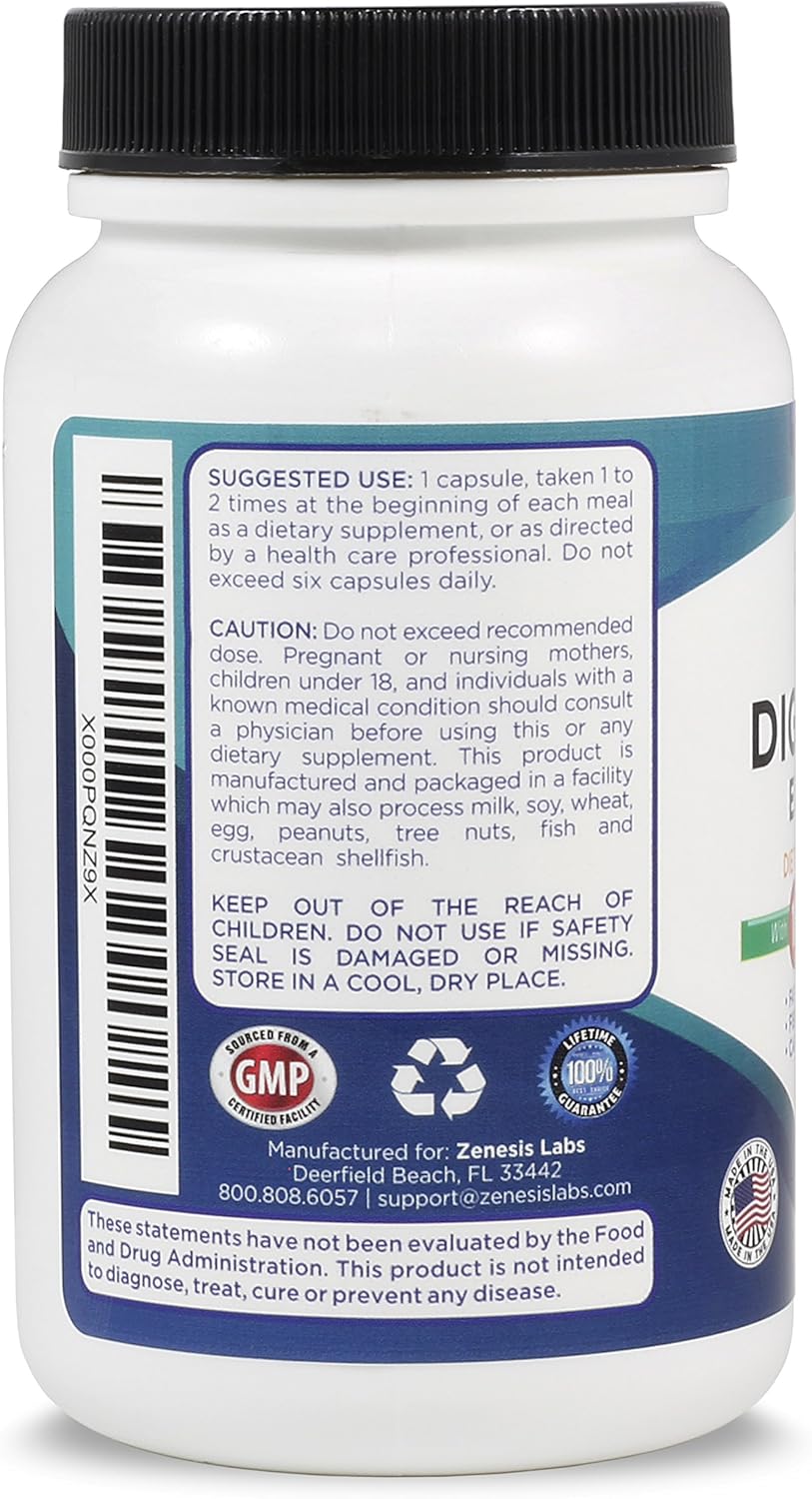 Zenesis Labs Digestive Enzymes - With Amylase, Bromelain, Protease, Lipase & 14 Other Enzymes Bulk 360 Capsule Supply (4 Bottle Set - 90 Capsules/Bottle)
