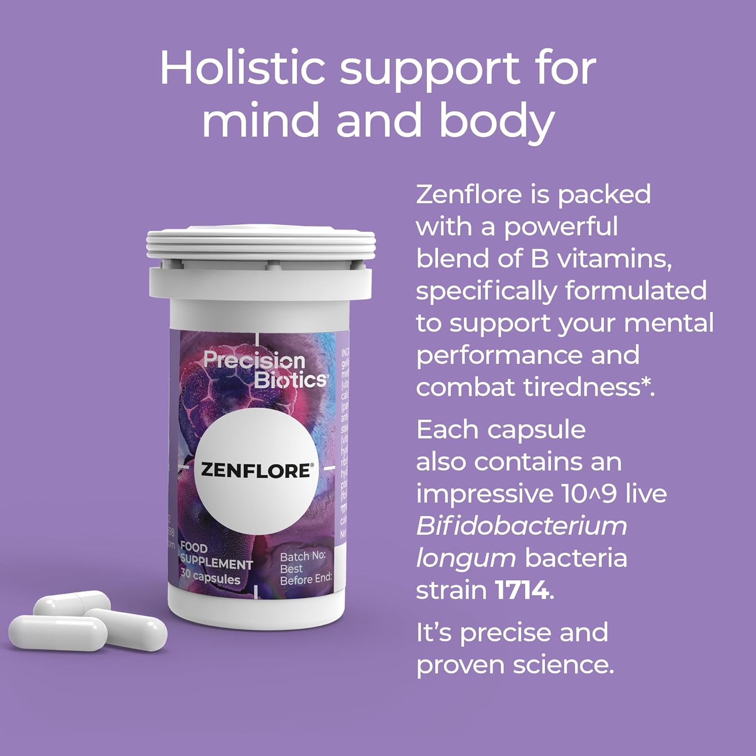 Zenflore 12 Week Plan - By Precisionbiotics - Probiotics Supplement With Unique Bifidobacterium Longum Bacteria Strain 1714 + Vitamin B6 And B12 - For Mental Performance - 90 Capsules