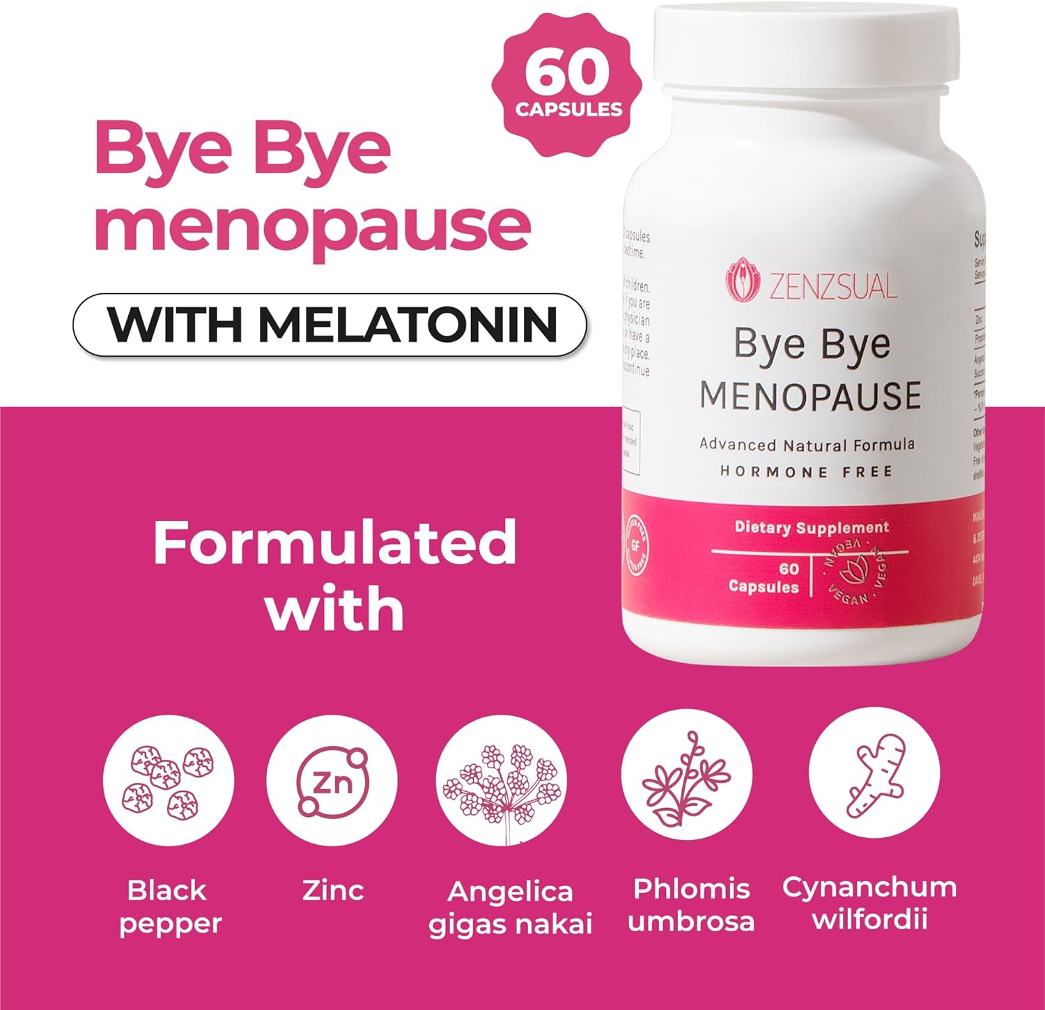 Zenzsual Bye Bye Menopause Supplements For Women – Natural Menopause Support For Hot Flashes, Night Sweats, Mood Swings & Hormone Balance – Melatonin-Free, Vegan, Estrogen-Free Formula – 60 Capsules