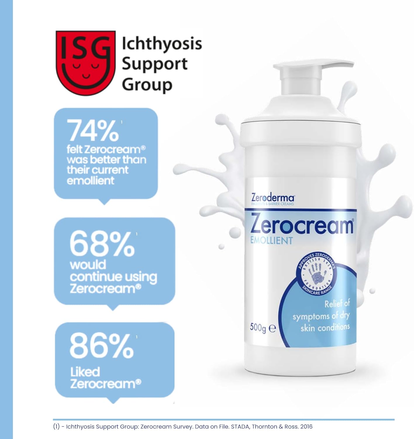 Zeroderma Zerocream Emollient Cream 2-In-1 Moisturiser & Soap Substitute, For Eczema, Psoriasis & Dry Skin Conditions. Hydrating Relief For Flaking Skin, 500G