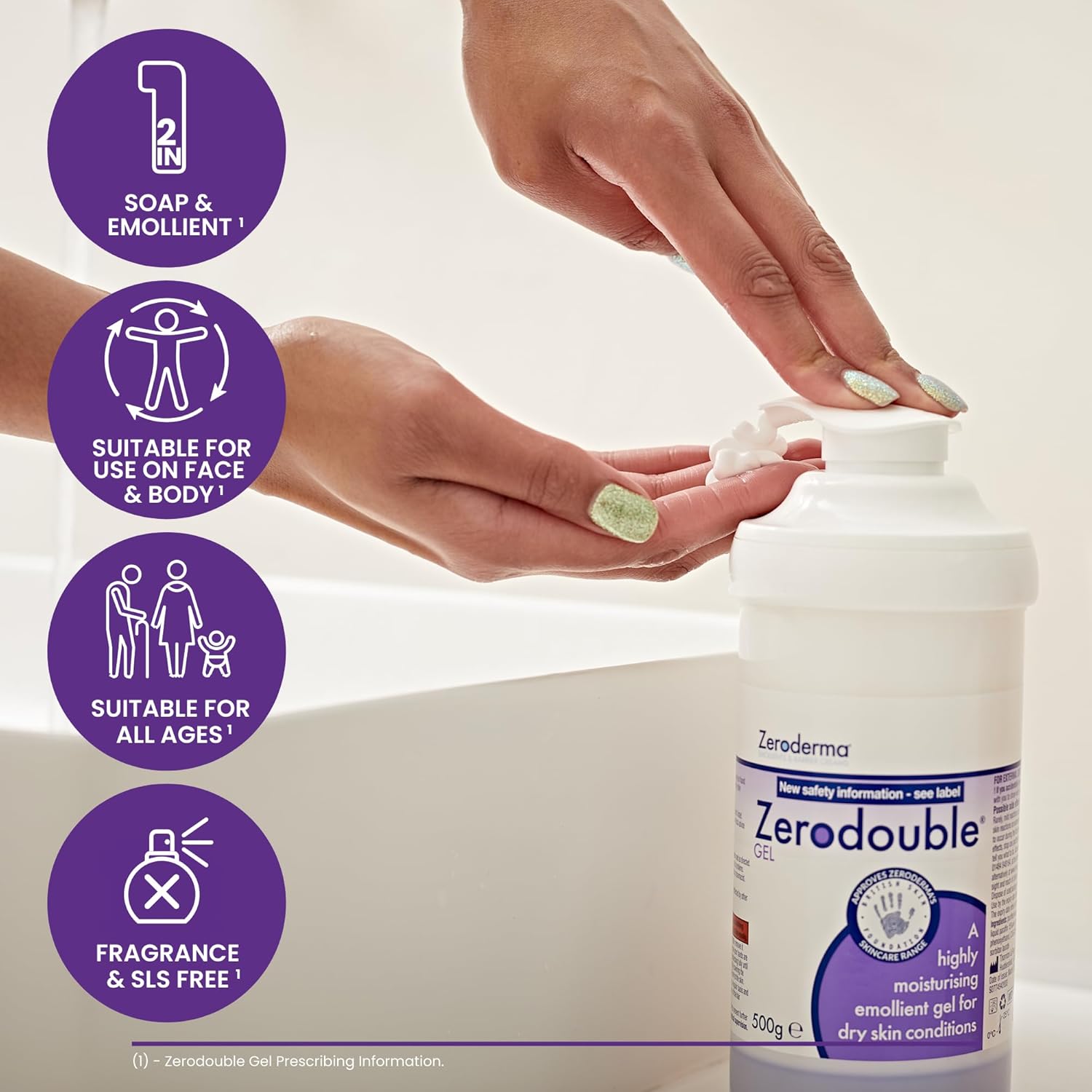 Zeroderma Zerodouble Gel, 2-In-1 Moisturiser & Soap Substitute, Highly Moisturising Gel For Dry Skin Conditions Such As Eczema, Psoriasis & Other Dry Skin Conditions. 100G