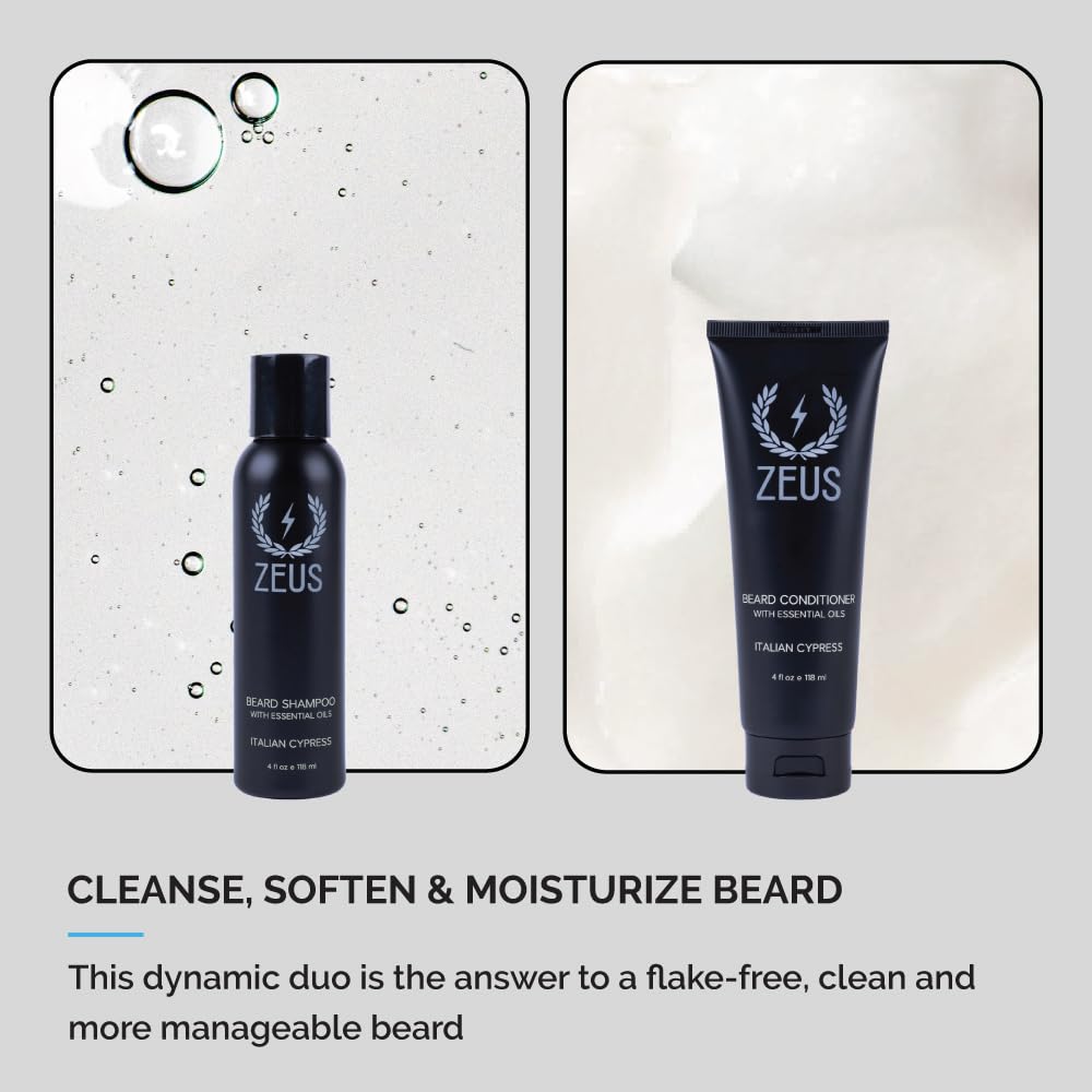 Zeus Italian Cypress Beard Shampoo Wash & Beard Conditioner Set With Essential Oils For Men (Made In Usa)
