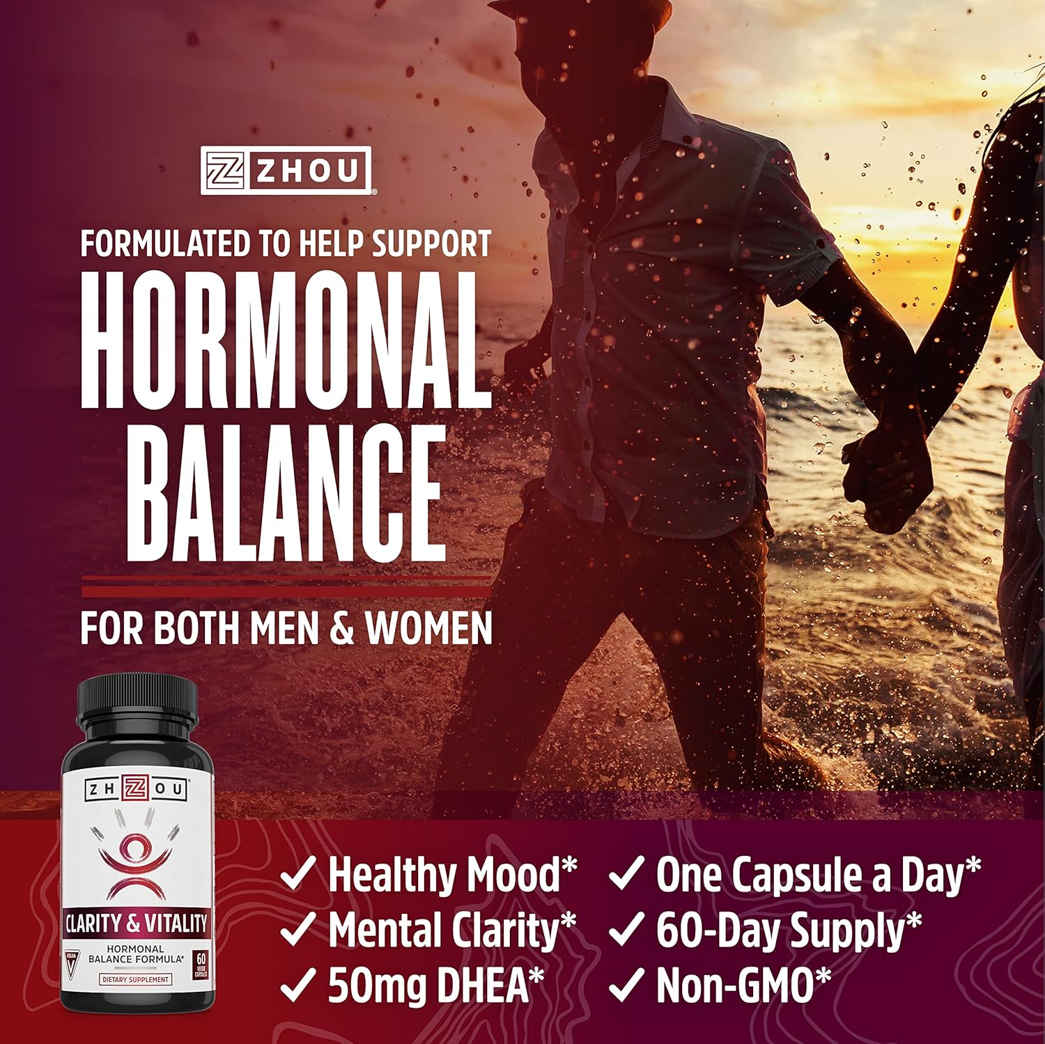 Zhou Clarity And Vitality (Formerly Dhea) 50 Mg, Hormonal Balance Formula For Women & Men, Healthy Aging, Non-Gmo, Vegan, Gluten Free, 60 Capsules