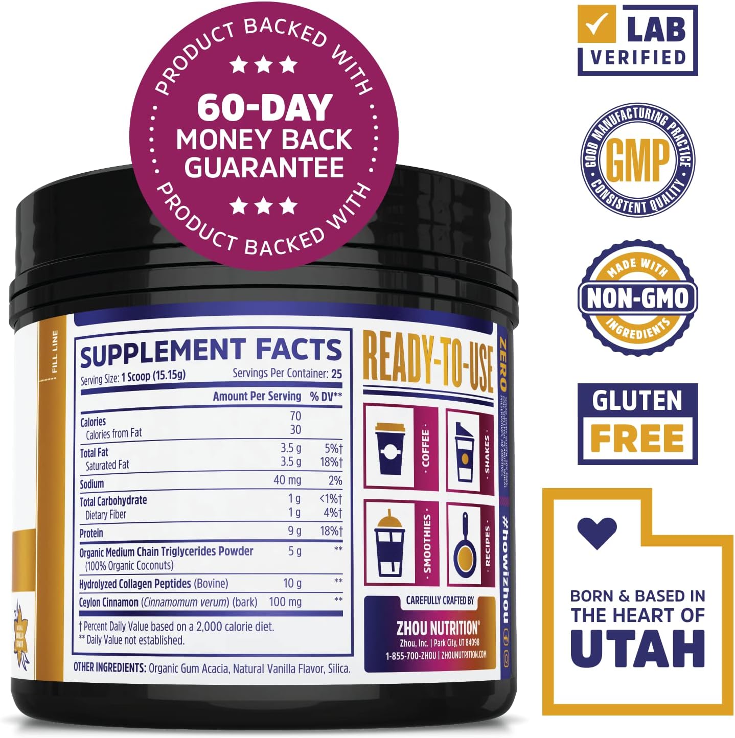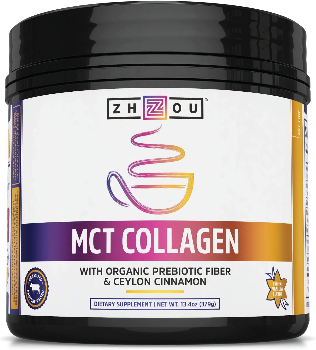 DESCRIPTION : Zhou MCT Collagen | with Organic Prebiotic Fiber & Ceylon Cinnamon | 25 Servings, 13.4 Oz