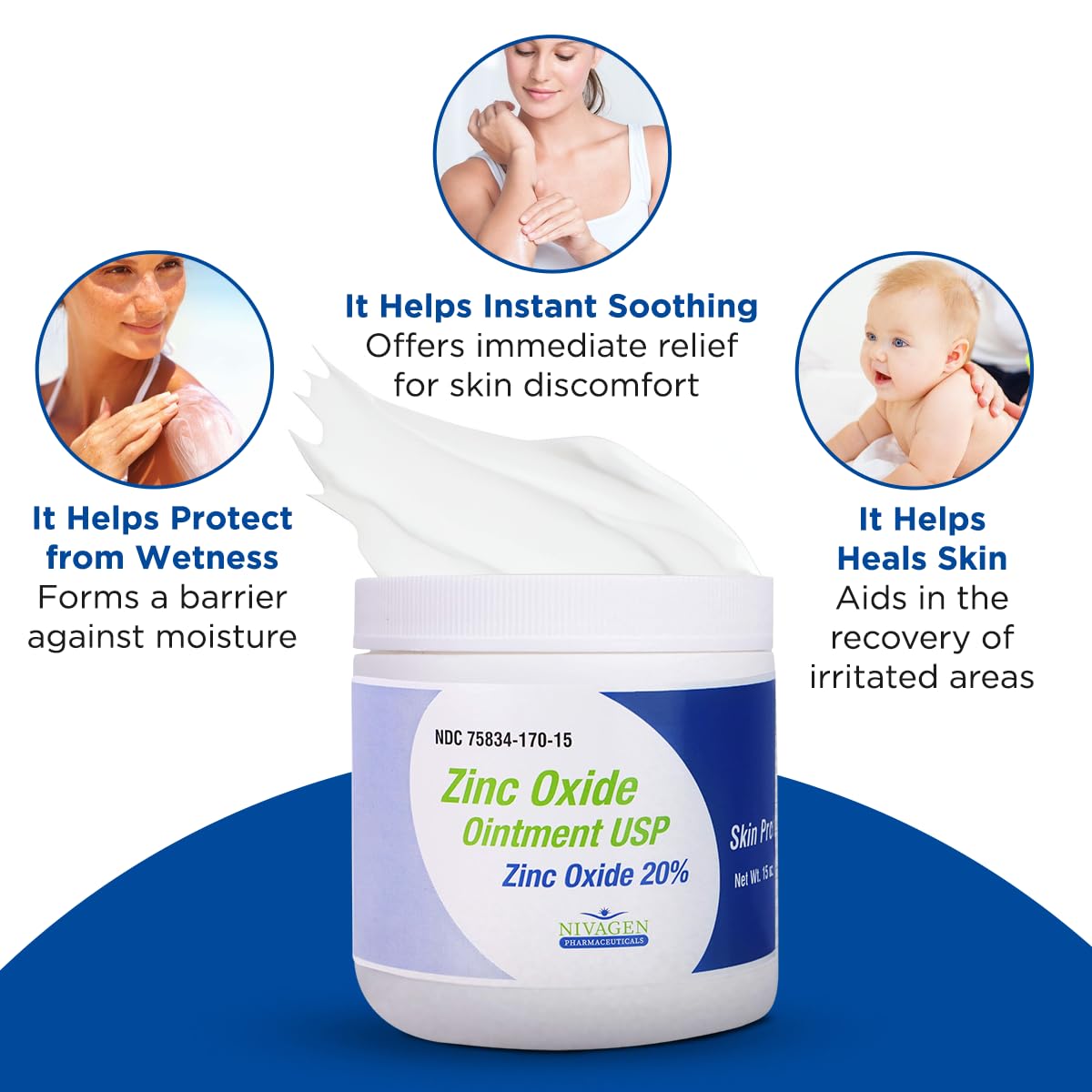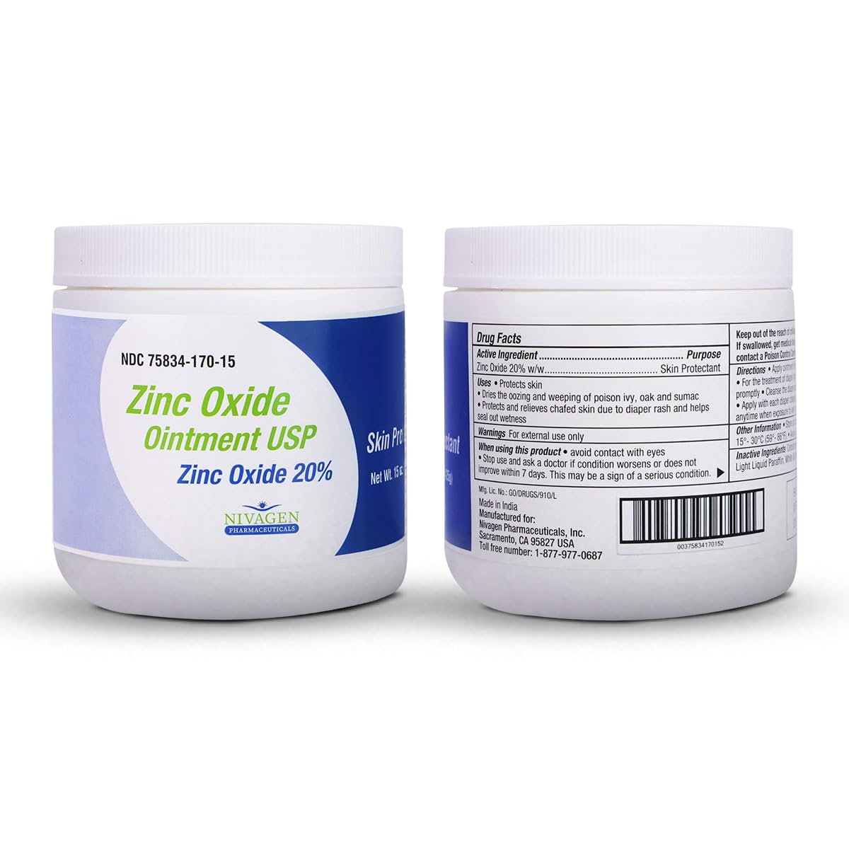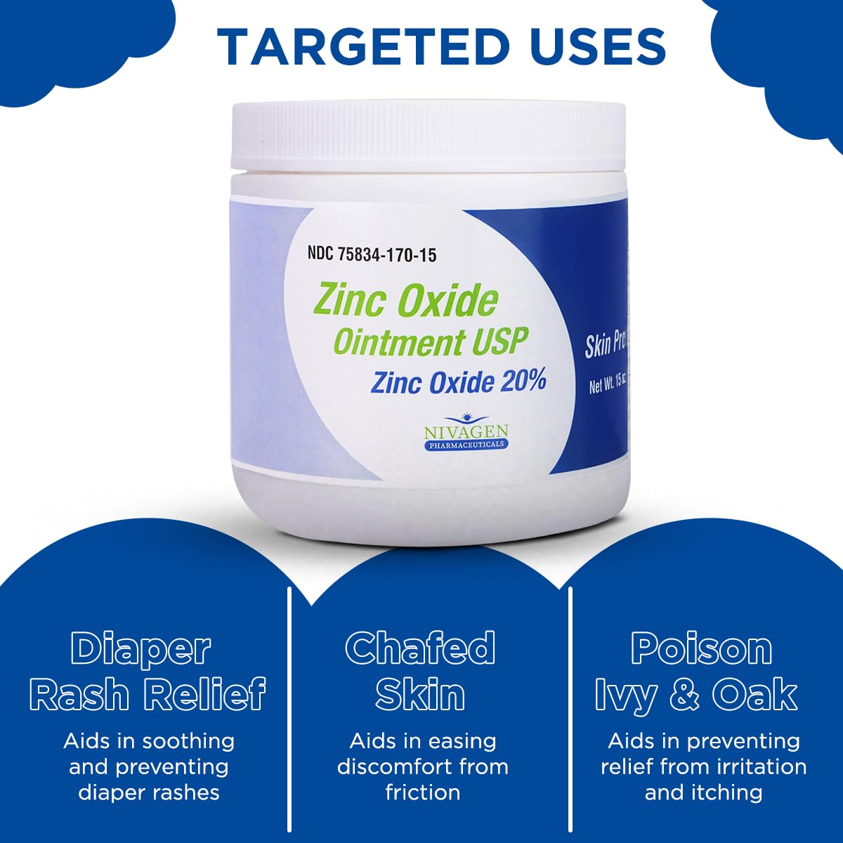 Zinc Oxide Ointment Usp 20% | For Diaper Rash, Chafed Skin, Protects From Wetness, Relief From Poison Ivy, Poison Oak, & Poison Sumac | 15Oz Jar Of Zinc Oxide