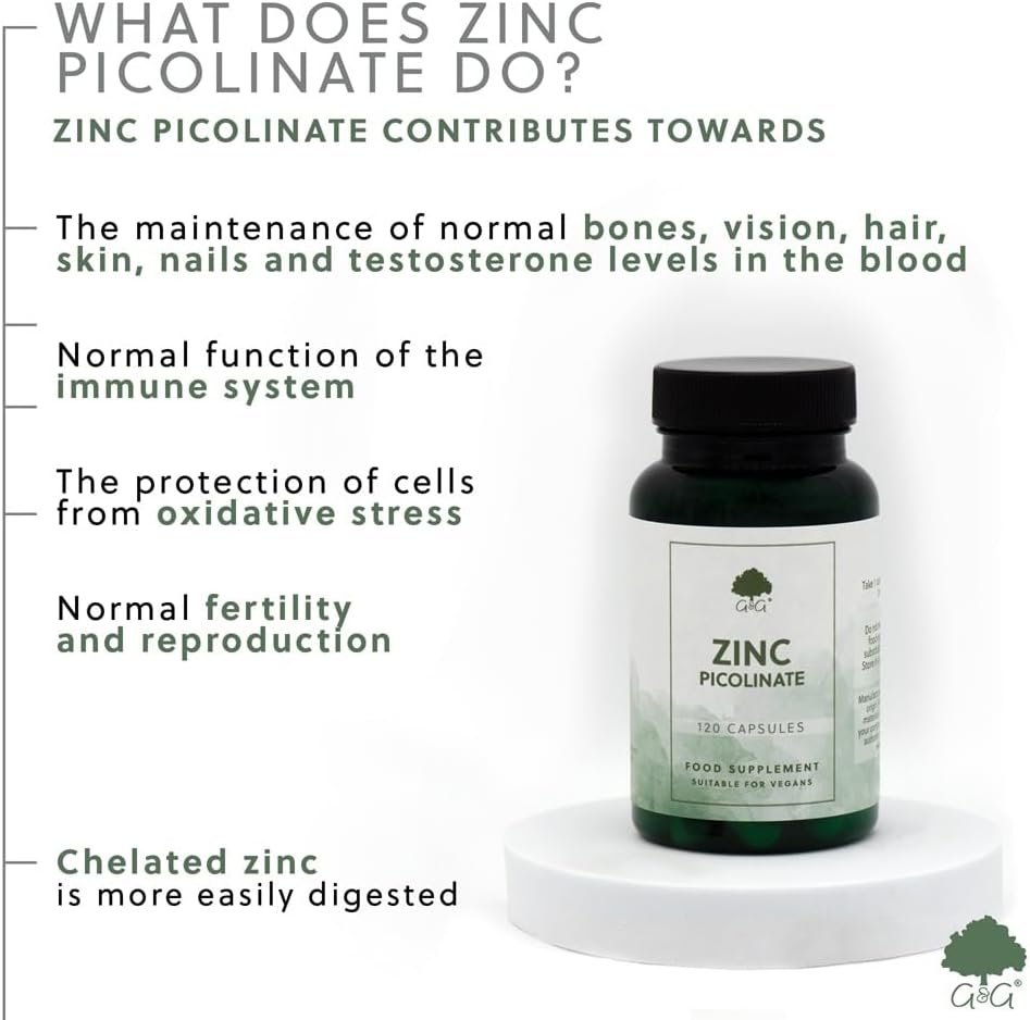 Zinc Picolinate - 22Mg Elemental Zinc Per Capsule - 120 Vegan Capsules - Chelated For Improved Absorption - Non-Gmo, Made In The Uk By G&G Vitamins