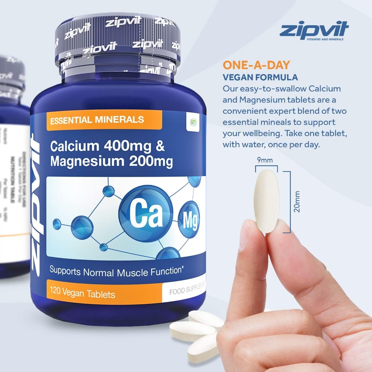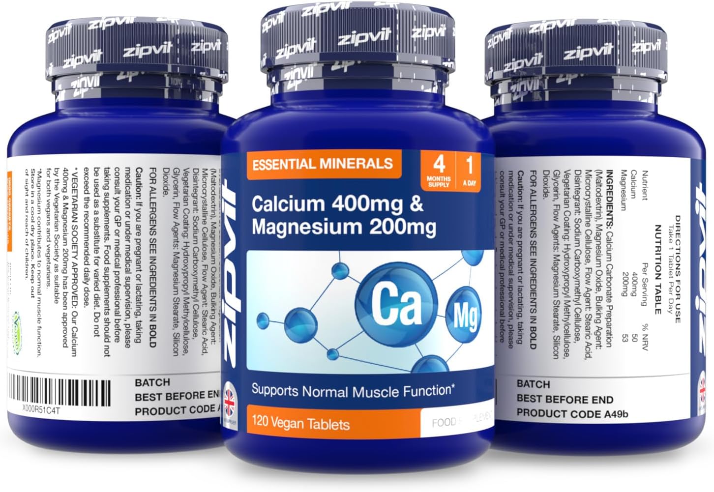 Zipvit Calcium 400Mg And Magnesium 200Mg, 120 Vegan Tablets (4 Months Supply). Supports Muscle And Bone Health. Vegetarian Society Approved