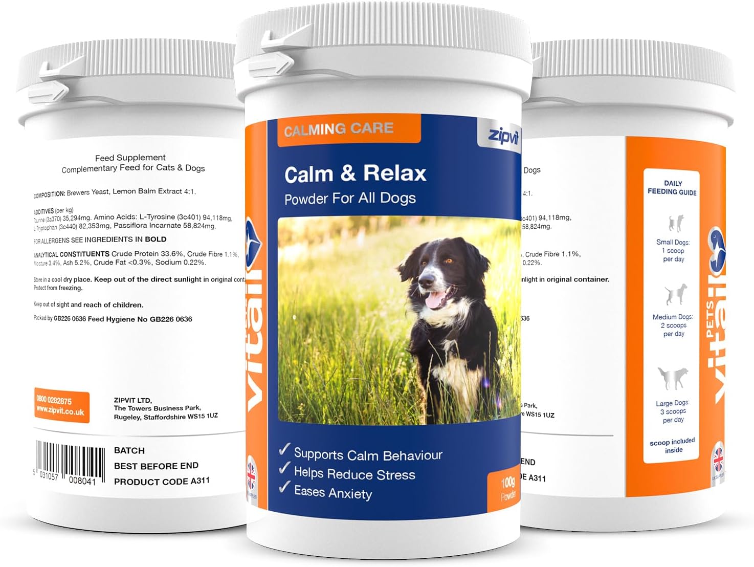Zipvit Dog Calming Powder, Calm And Relax Supplement For All Dogs, Supports Calm Behaviour And Dog Anxiety Relief, 100G