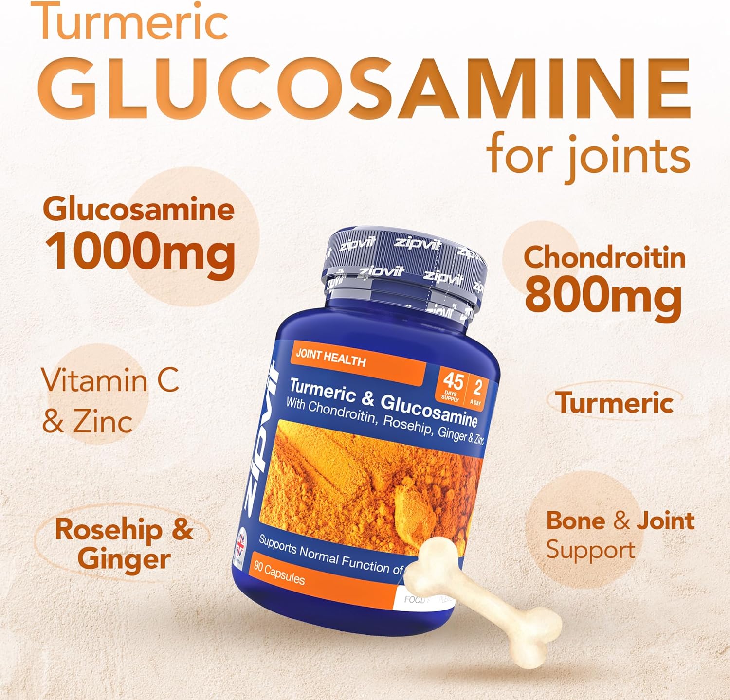 Zipvit Glucosamine And Chondroitin High Strength Complex With Turmeric, Vitamin C, Rosehip, Ginger & Zinc. Joint Supplements 90 Capsules