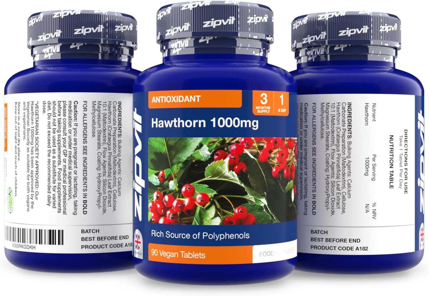 Zipvit Hawthorn Berry Leaf Tablets 1000Mg, 90 Vegan Hawthorn Tablets 3 Month Supply