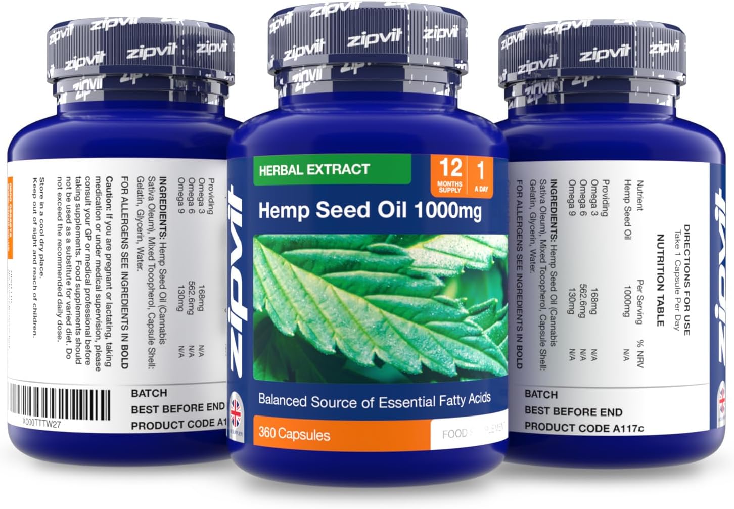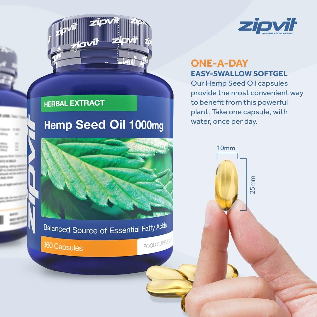 Zipvit Hemp Oil 1000Mg Supplement, 360 Softgel Capsules Of Hemp Seed Oil. 12 Months Supply