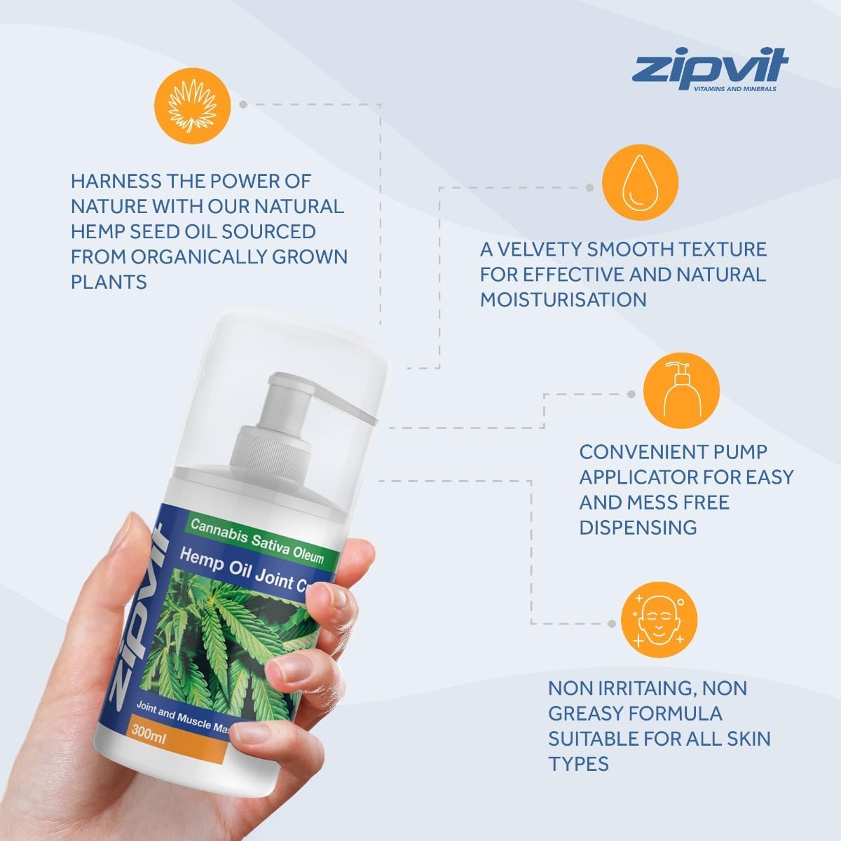 Zipvit Hemp Seed Oil Cream For Joint & Muscle, Sports Massage Gel With Hemp Seed Oil 300Ml