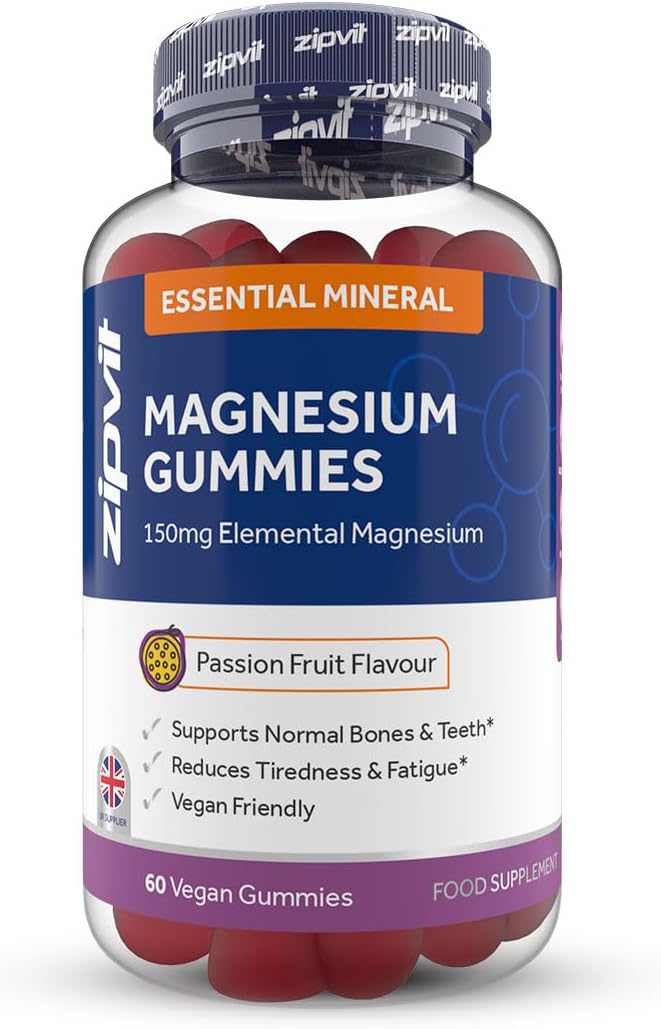 Zipvit Magnesium Gummies For Adults, 150Mg Elemental Magnesium Citrate, Supports Energy, Muscle & Bone Health, Passionfruit Flavour, 60 Vegan Gummies, 1 Month Supply