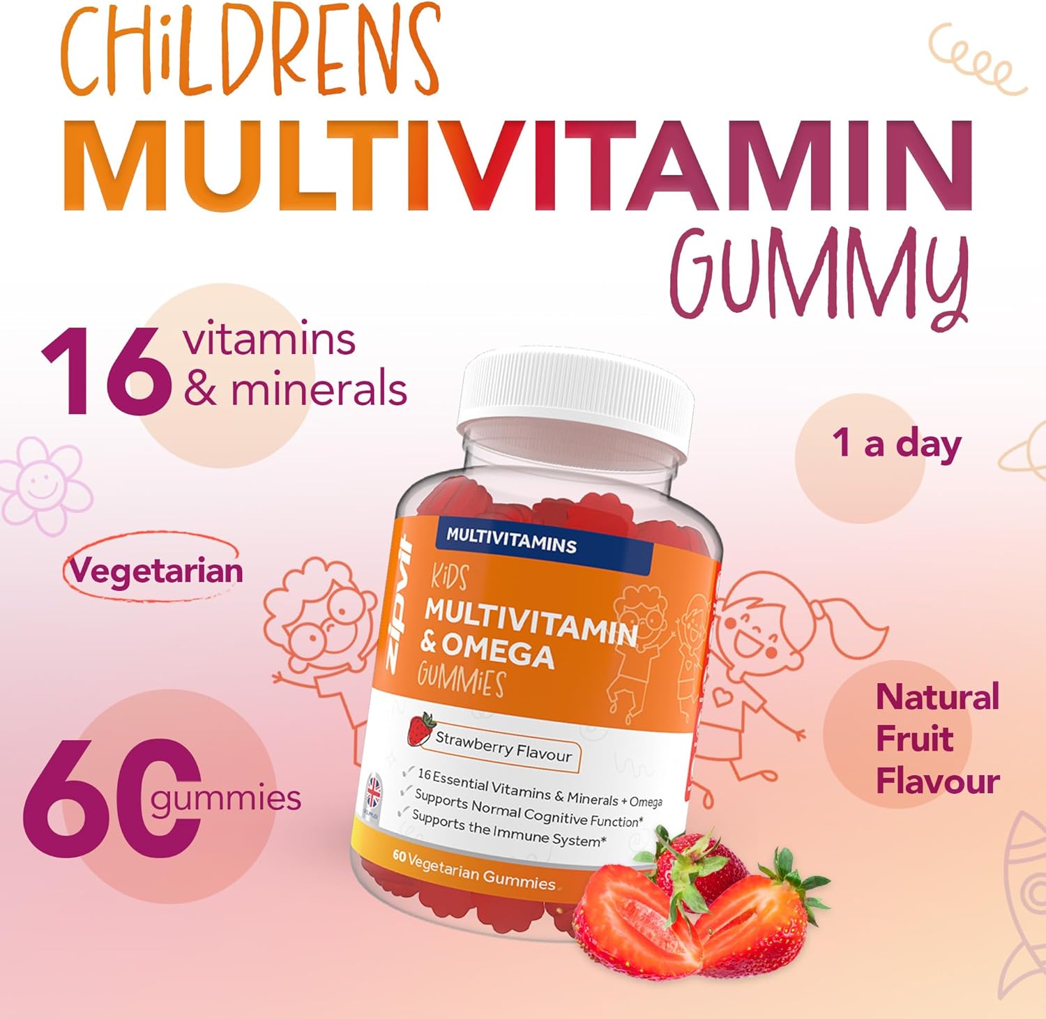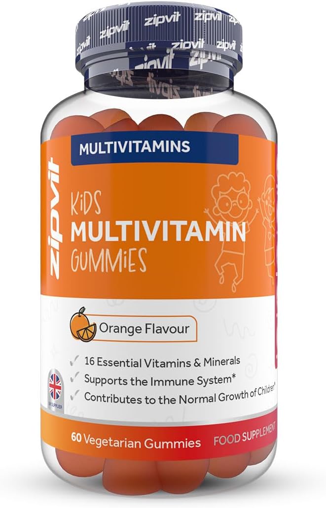 Zipvit Multivitamin Gummies For Kids Aged 4+, 16 Essential Vitamins, Supports Kids' Immunity, 60 Orange Flavoured Gummies, 2 Months Supply Of Vegetarian Vitamins