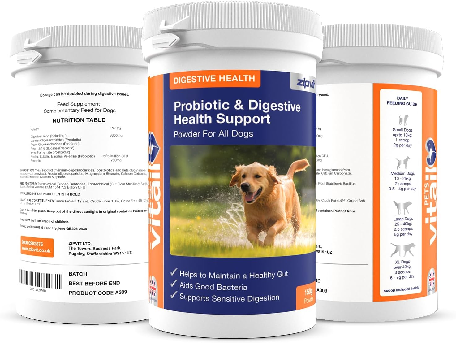 Zipvit Probiotics For Dogs, Daily Dog Probiotic Powder For Gut Health And Digestion, 525 Million Cfu Per Serving, With Prebiotics And Postbiotics, 150G
