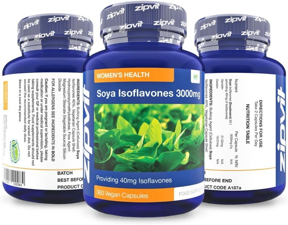 Zipvit Soya Isoflavones 3000Mg, 6000Mg Daily Dose. 120 Vegan Capsules, 2 Months Supply