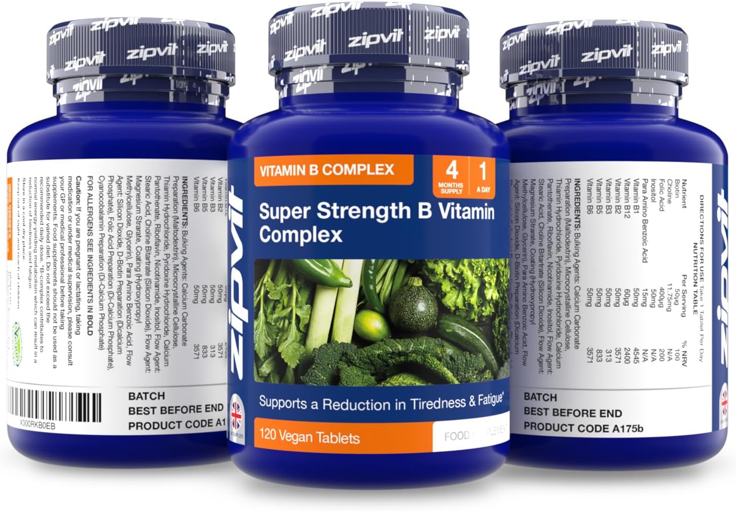 Zipvit Super Strength B Vitamin Complex, 120 Vegan Tablets. 4 Months Supply. Vitamin B1, B2, B3, B5, B6, B12, Biotin, Choline. Supports Focus, Mental Performance, And Energy