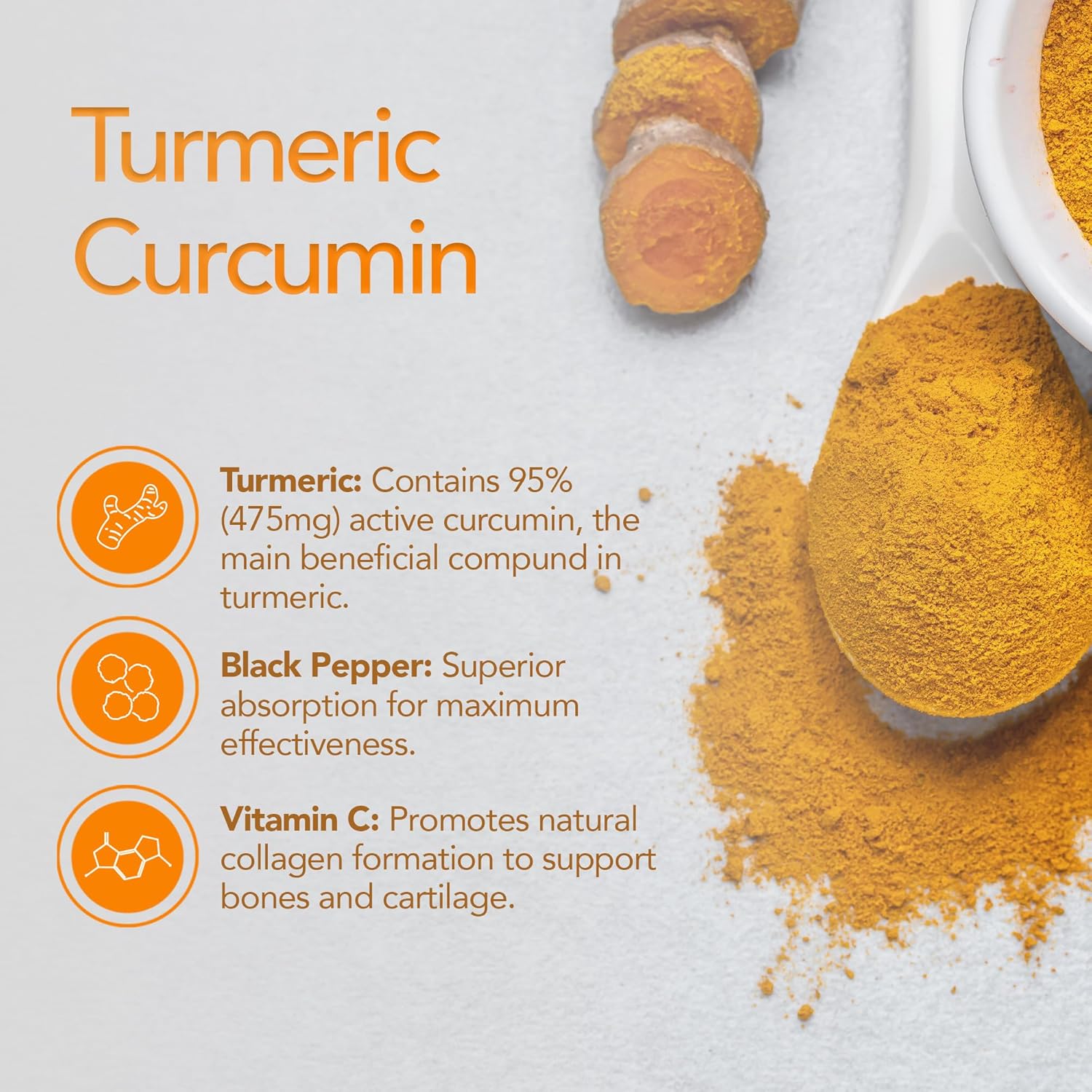 Zipvit Turmeric Tablets 10,000Mg Providing 95% Active Curcumin With Bioperine Black Pepper & Vitamin C, 60 Vegan Tablets, 1 A Day, 2 Month Supply