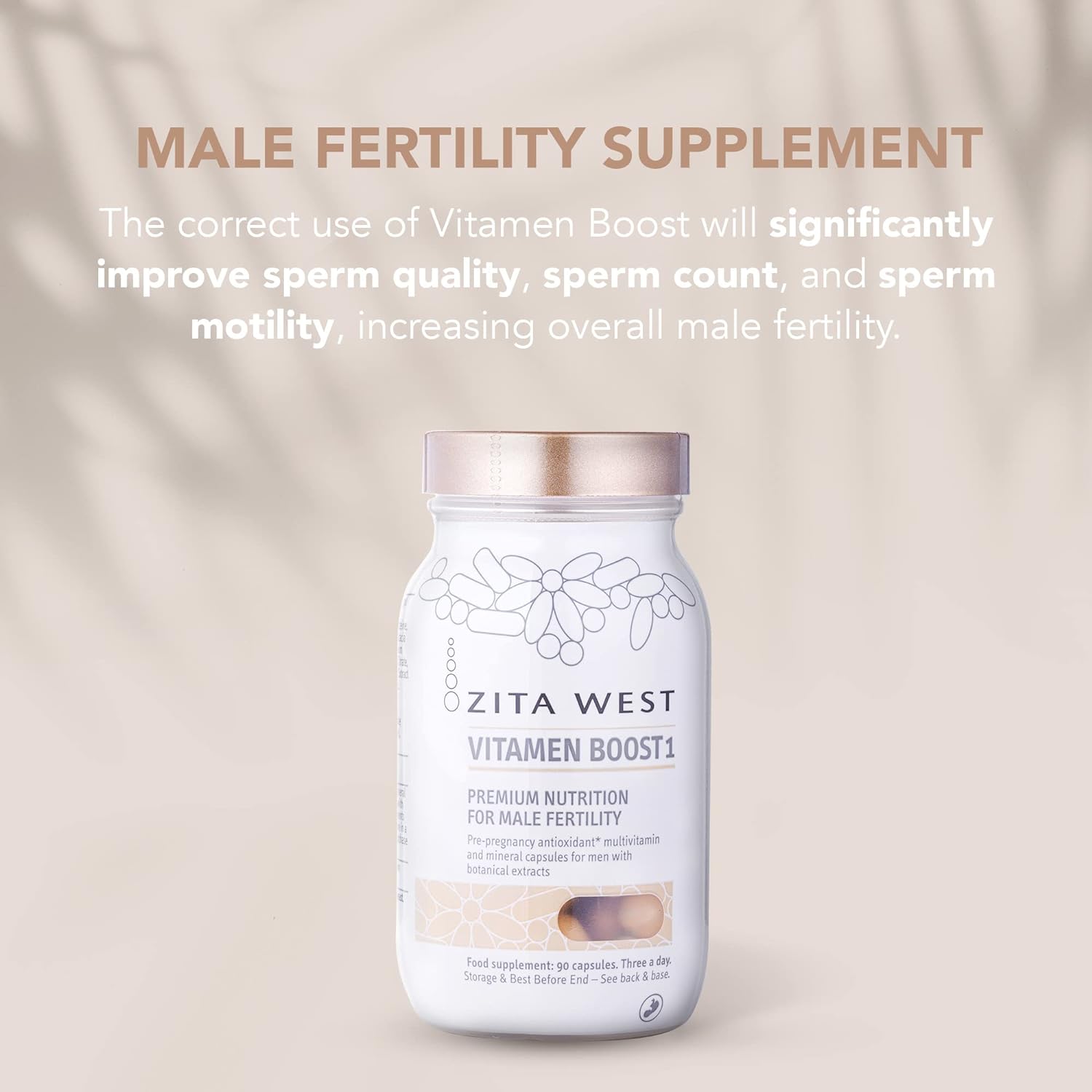 BULLET POINTS :  1 > MALE FERTILITY SUPPLEMENT: The correct use of Vitamen Boost will significantly improve sperm quality, sperm count, and sperm motility, increasing overall male fertility