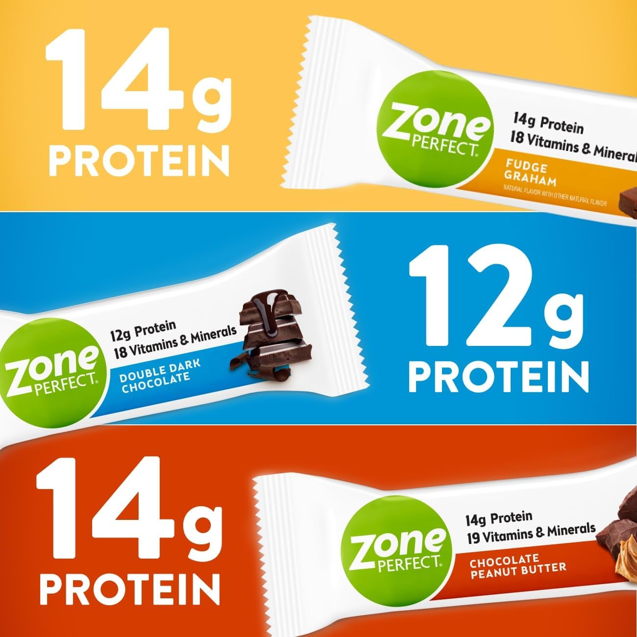 Zoneperfect Protein Bars, 12-14G Protein, 18-19 Vitamins & Minerals, Nutritious Snack Bar, Double Dark Chocolate, Fudge Graham, Chocolate Peanut Butter, 36 Bars