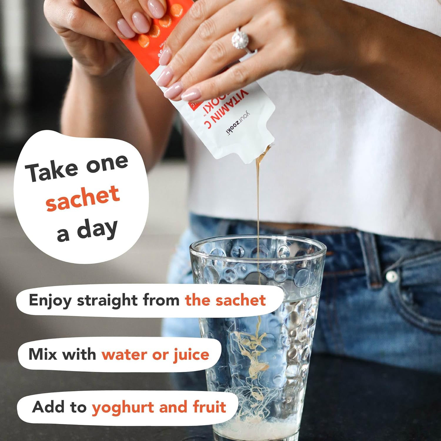 SUGAR FREE, GREAT TASTE & NATURAL INGREDIENTS - Enjoy straight from the saceht or mix with water, smoothies, porridge, yoghurt and more. Free from sugar, gluten, dairy, soy, wheat, GMO or any synthetic ingredients like potassium sorbate and ethanol that can sometimes appear in other liquid vitamin c products. We only use natural, sustainably sourced ingredients