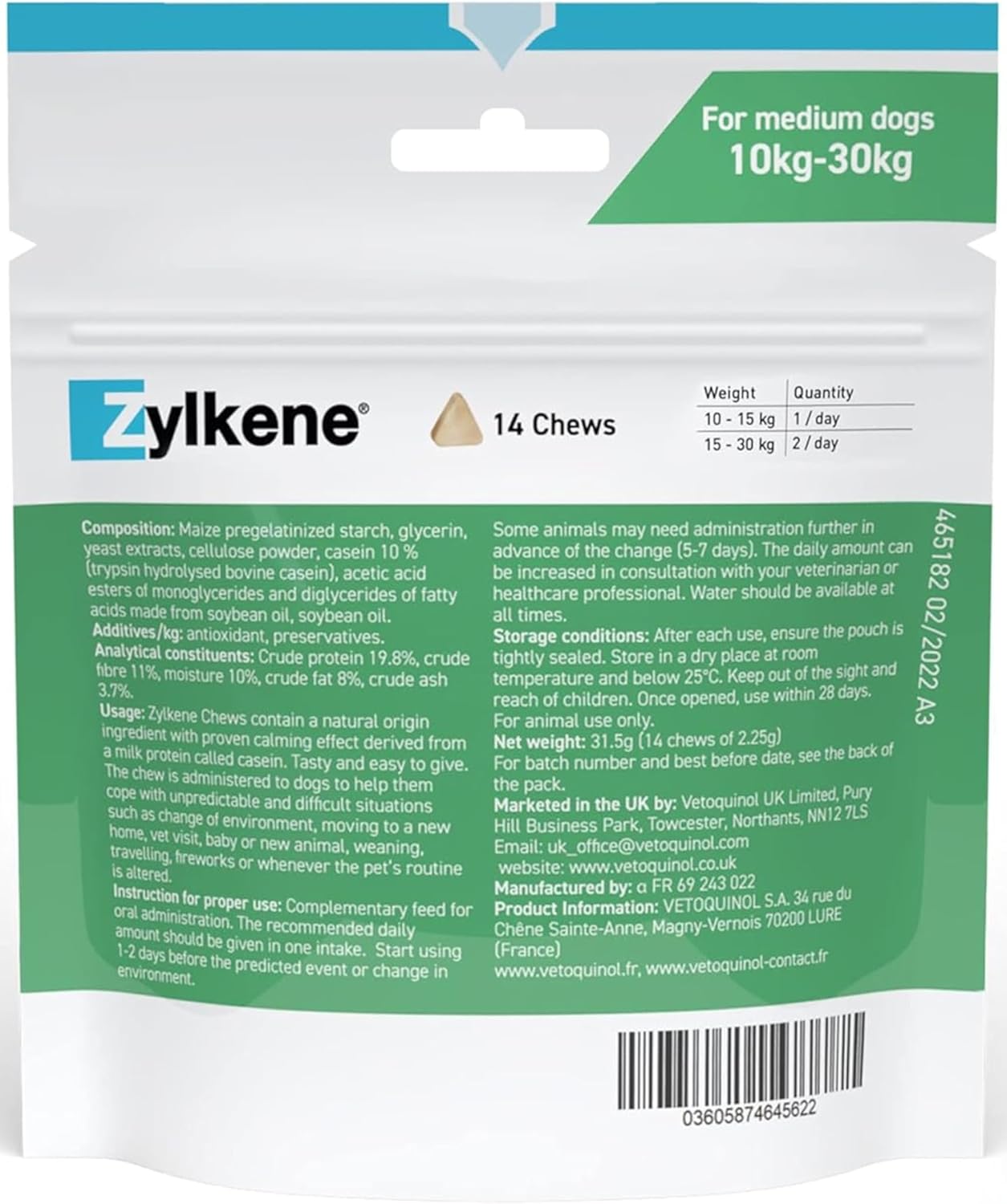 Zylkene Calming Chews for Large Dogs (30 to 60kg) | Promotes Relaxation | Helps Pets cope with short-term challenging situations | Perfect for on the go, holidays, travelling, fireworks | 14 Chews