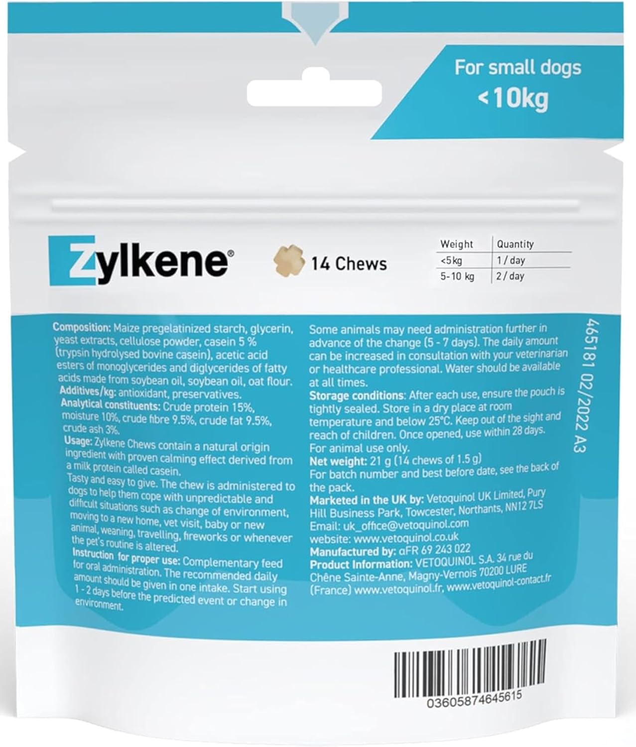 Zylkene Calming Chews For Medium Dogs (10 To 30Kg) | Promotes Relaxation | Helps Pets Cope With Short-Term Challenging Situations | Perfect For On The Go, Holidays, Travelling, Fireworks | 14 Chews